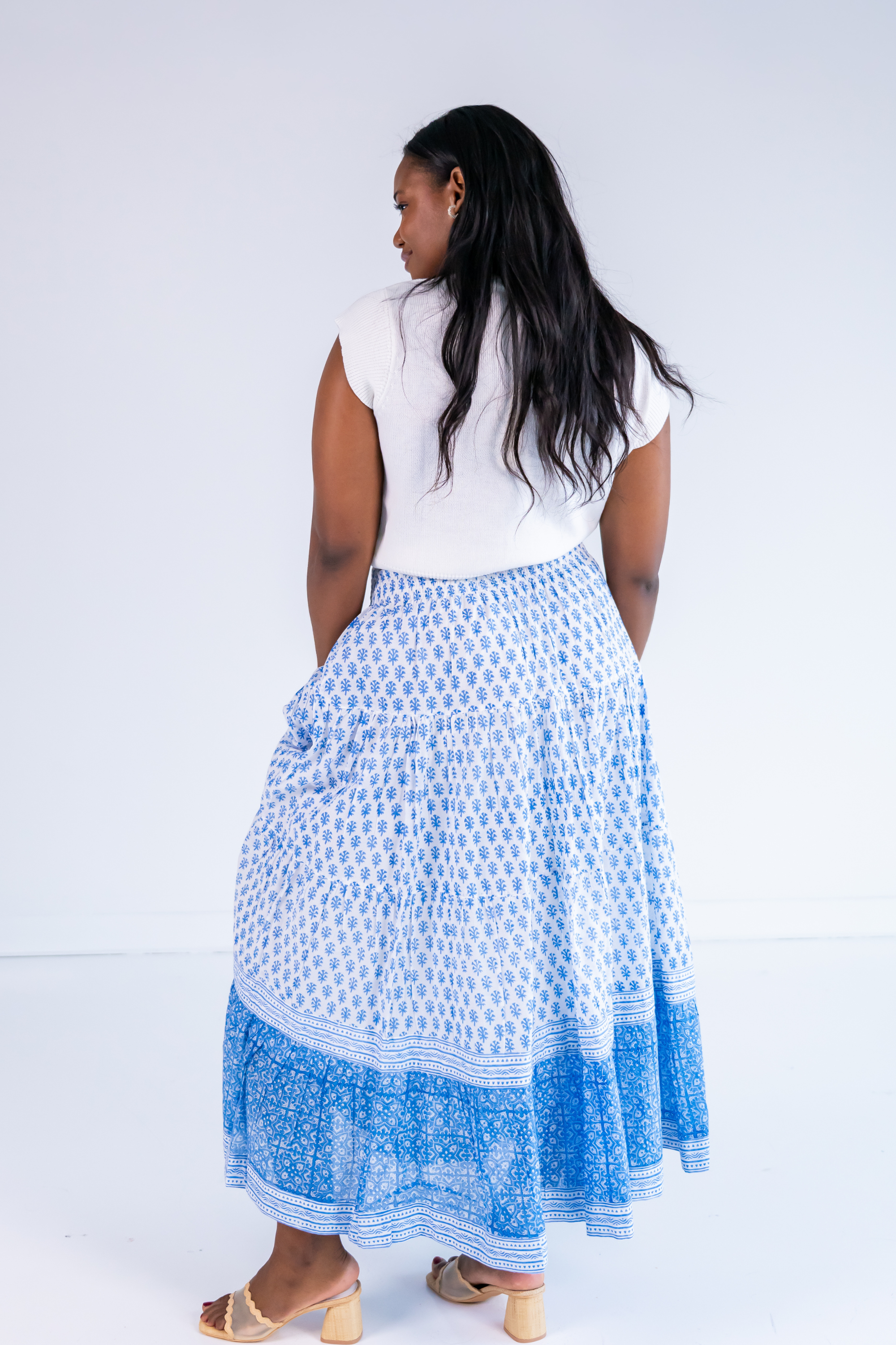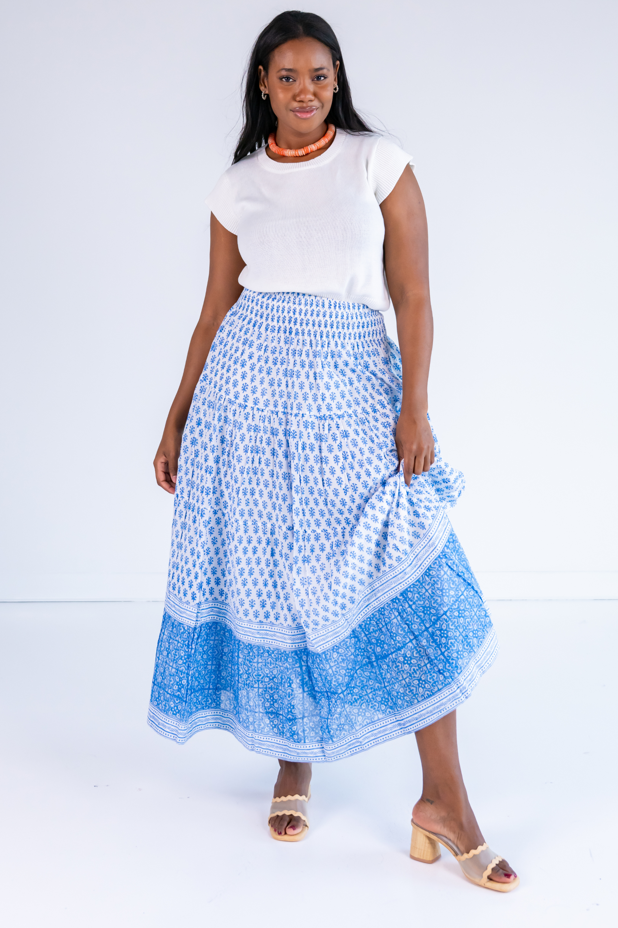 Britt Smocked Maxi Skirt - Tile Mini Clove Mix Blue
