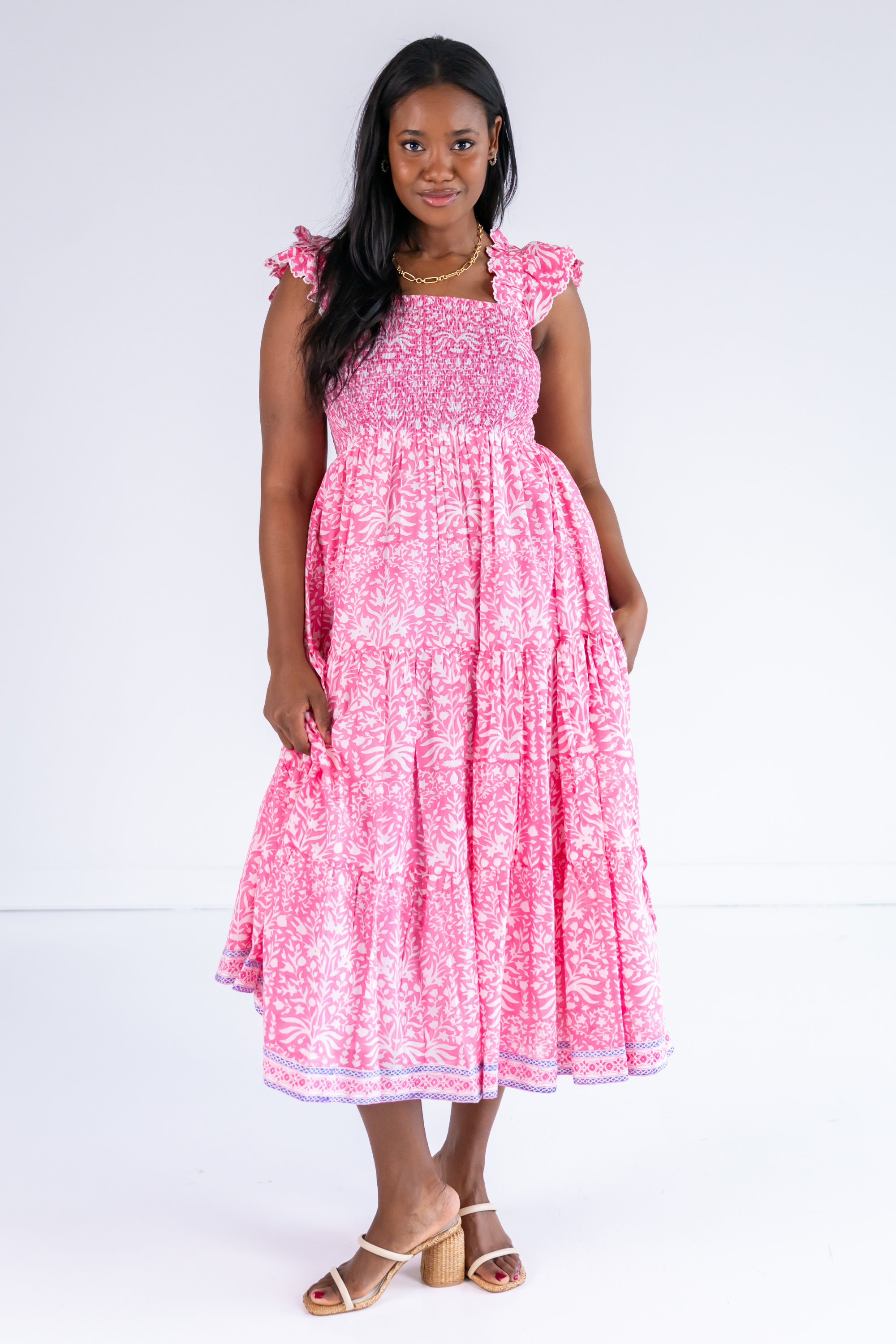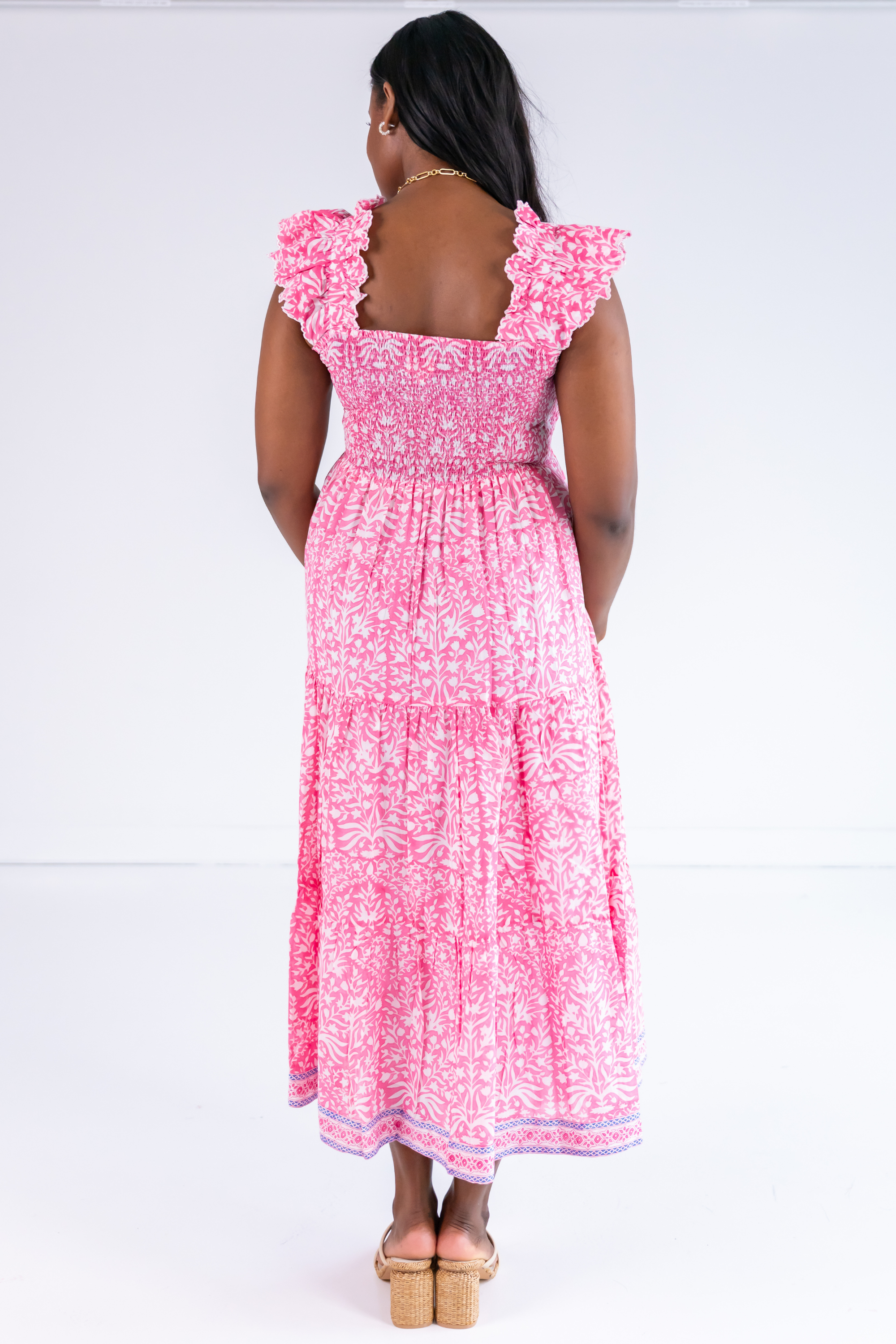 Chloe Scalloped Maxi Dress - Blossom Bubblegum