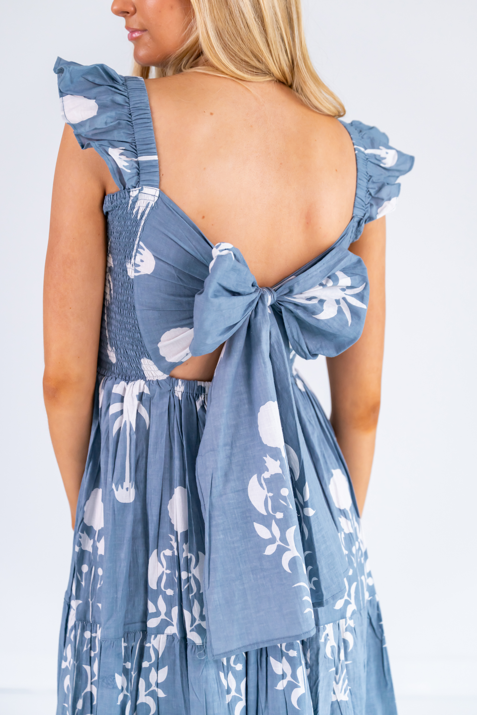 Erin Tie Back Maxi Dress - Sago Palm Chambray