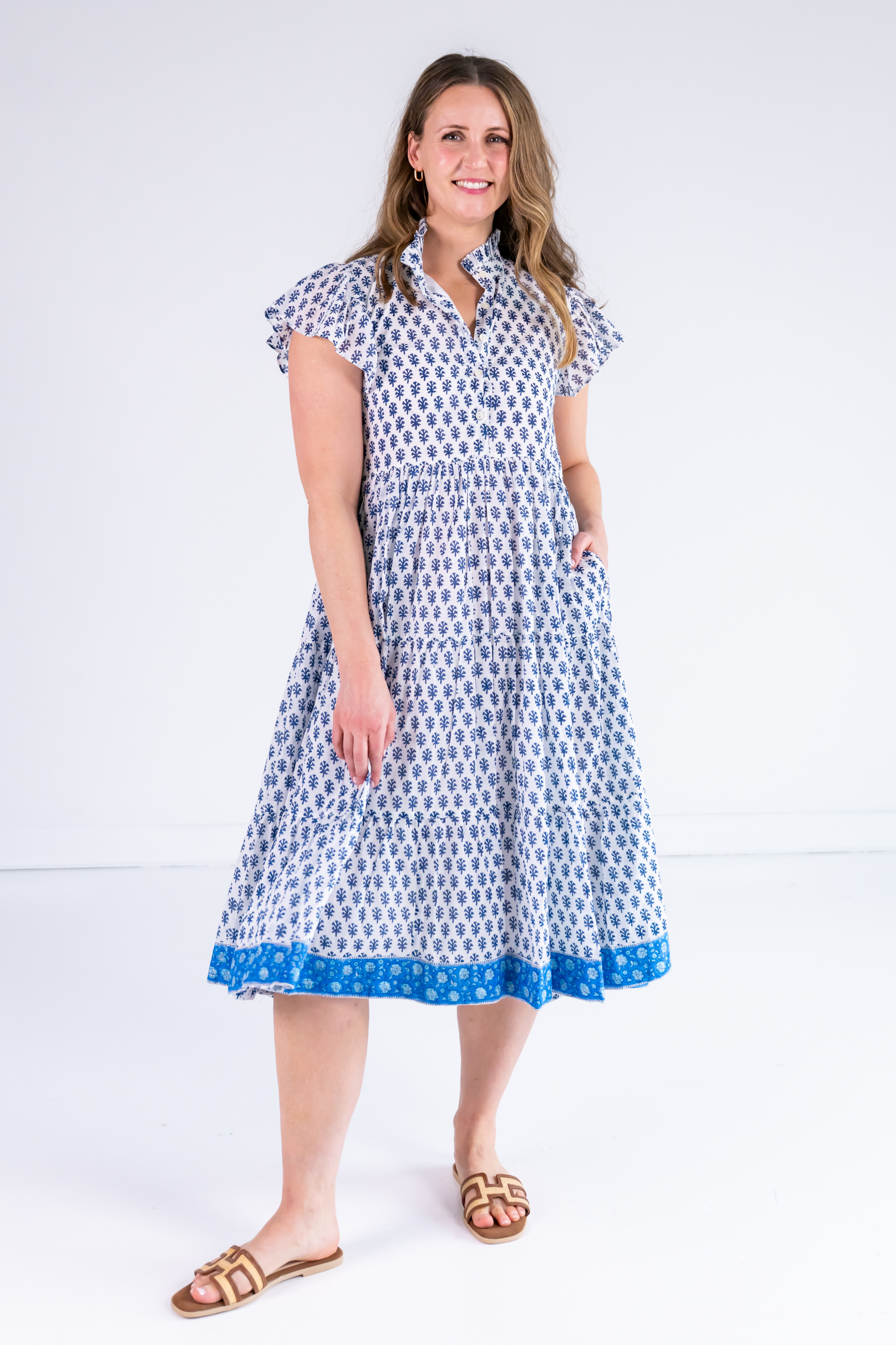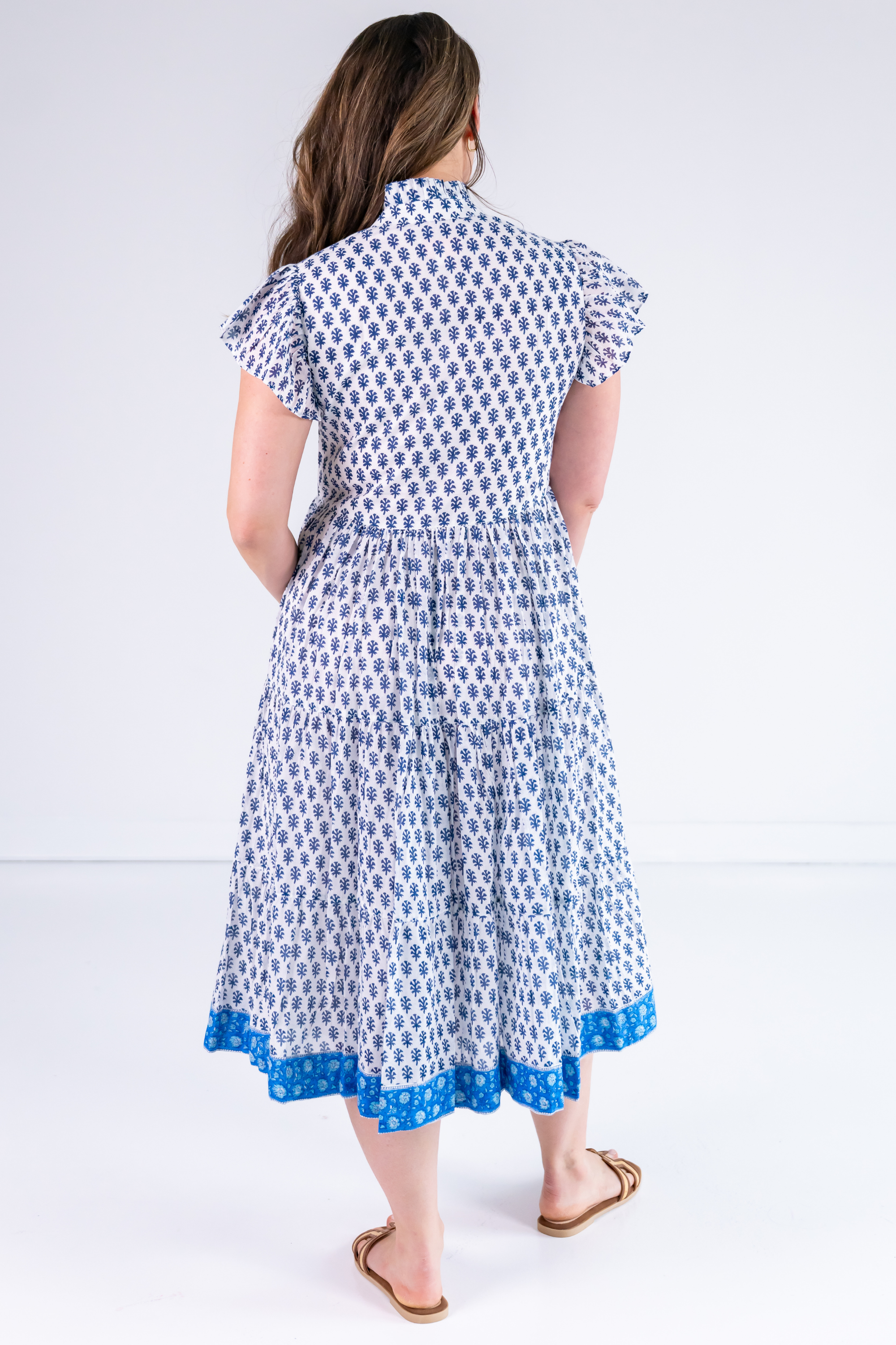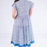 Lou Short Sleeve Flutter Midi Dress - Mini Clove Blue Mix