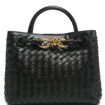 Meet your new favorite everyday companion: the Mason Woven Tote in Black. This structured bag features a chic top handle for easy carrying, plus a sleek gold knot detail that adds a dash of glam. Switch things up by wearing it crossbody or on your shoulder for hands-free fun. Practical yet stylish, it’s perfect for carrying your essentials while keeping your outfit effortlessly classy.