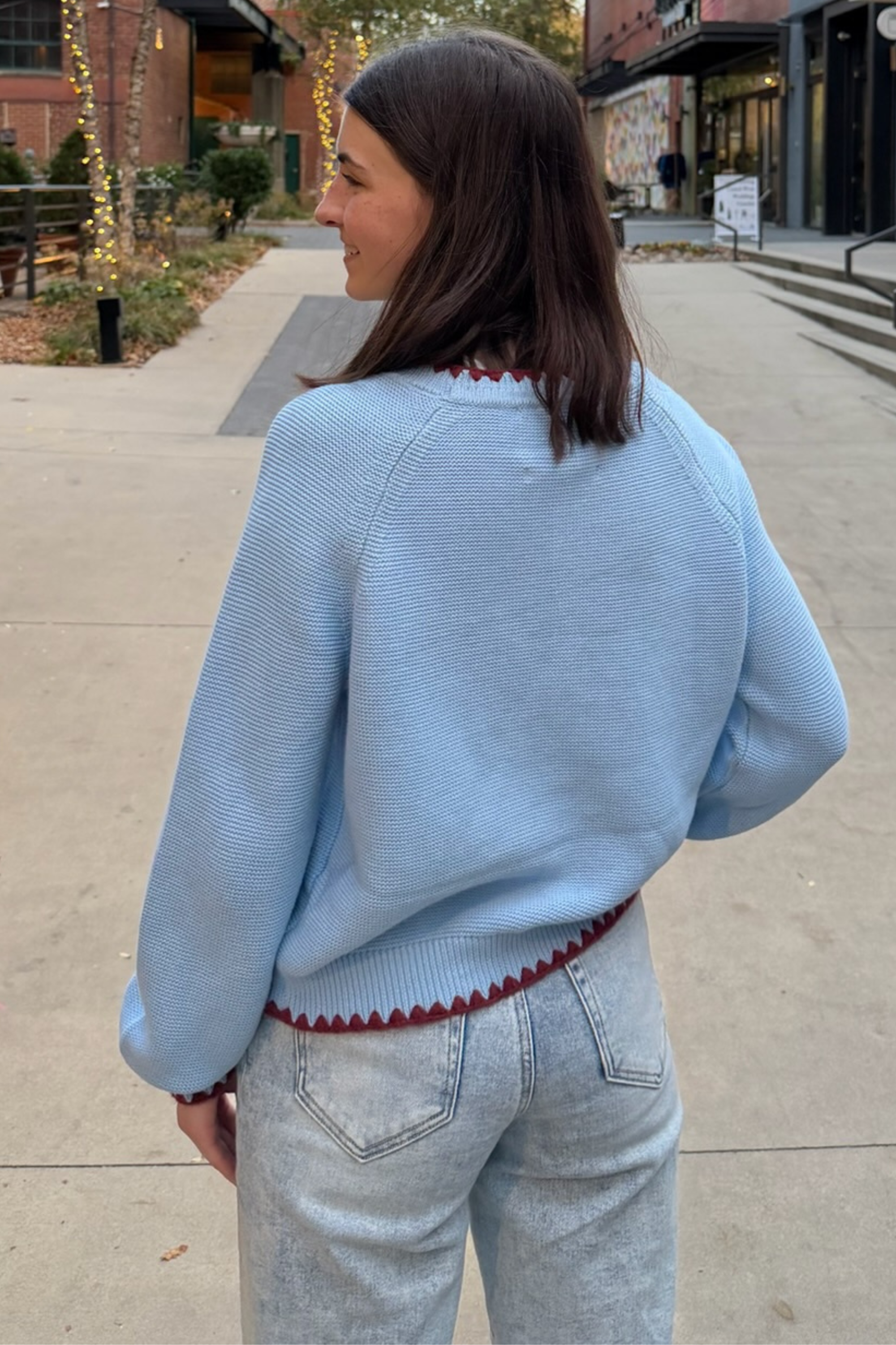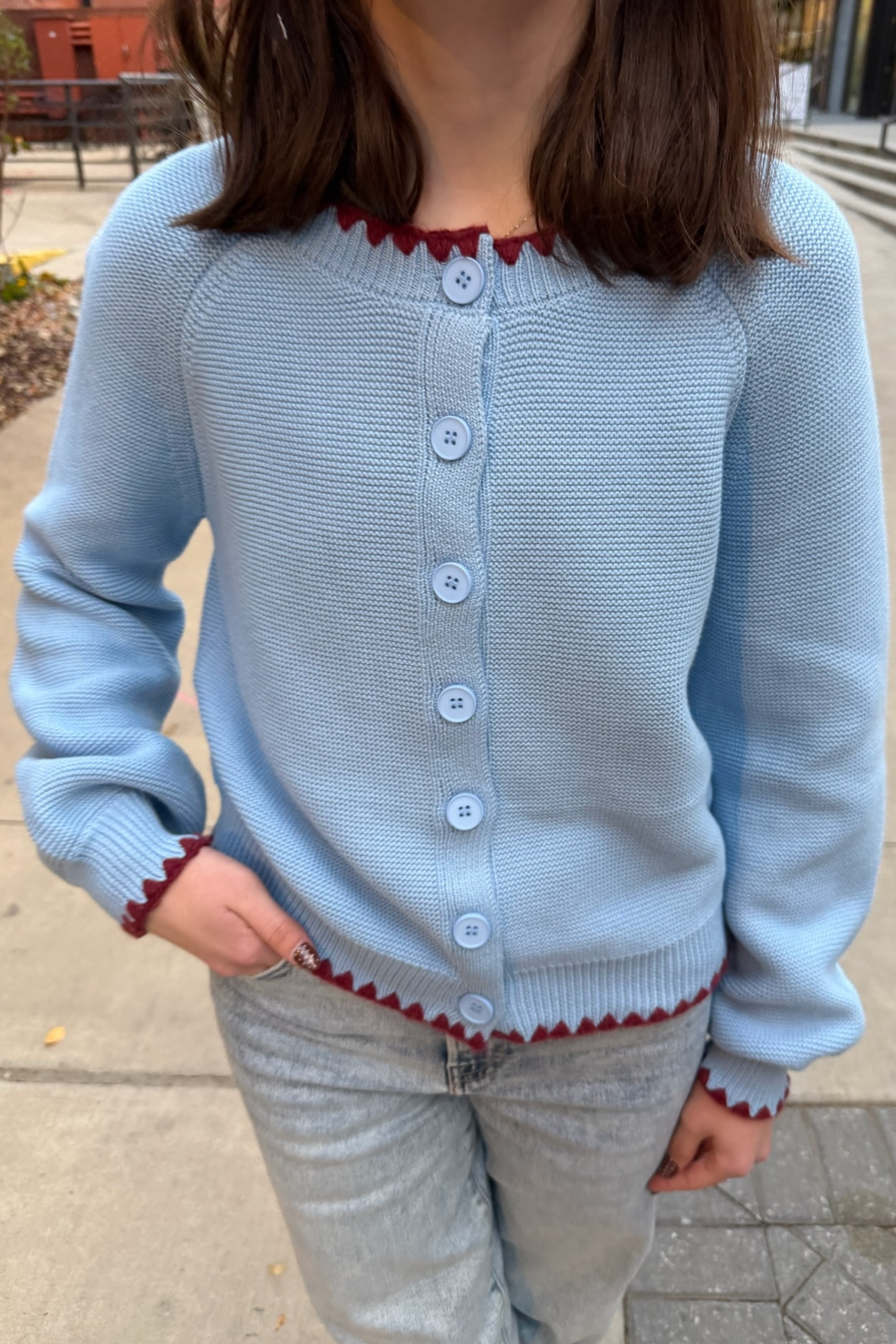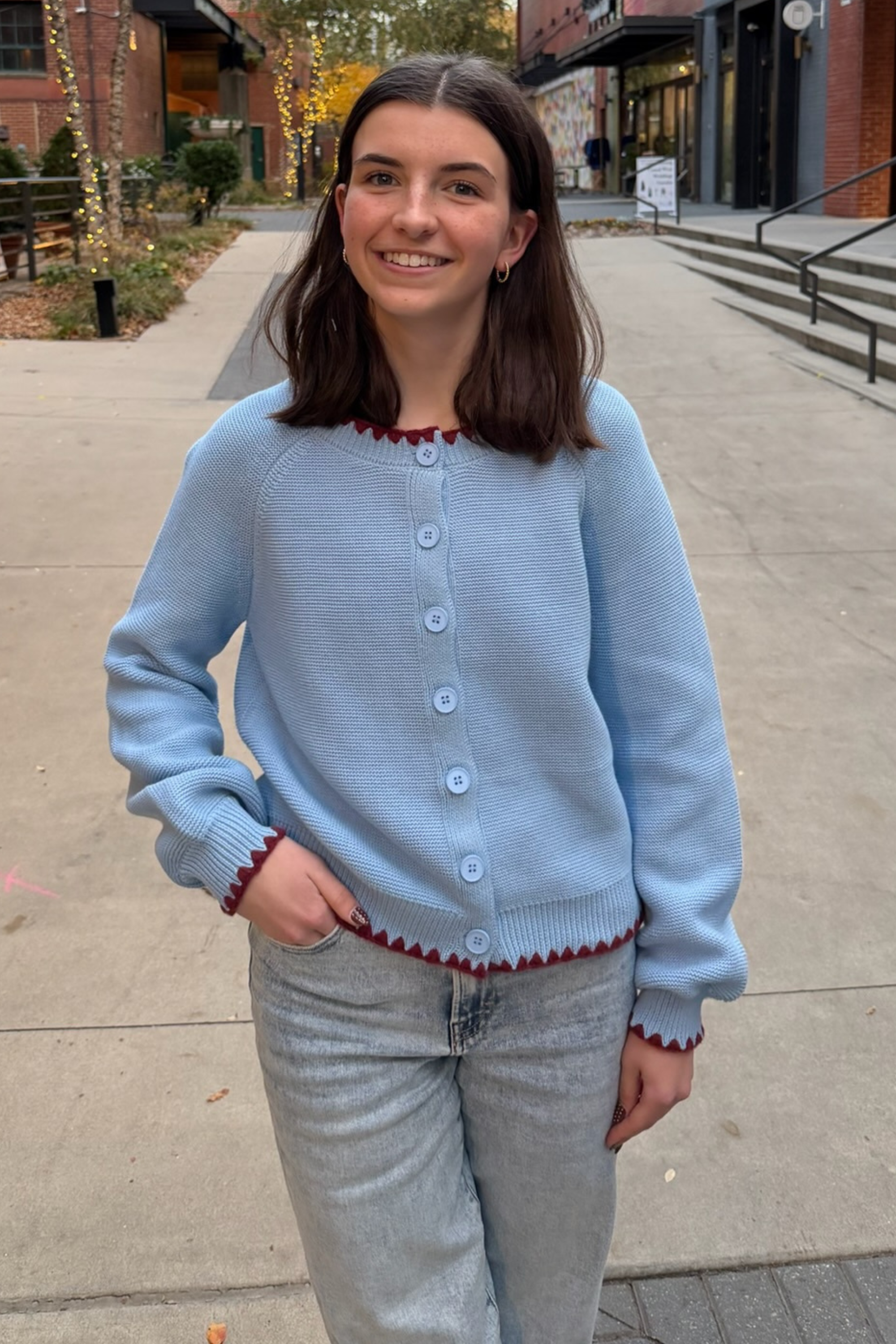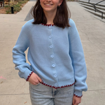 Aliza Contrast Stitch Cardigan - Blue/Red