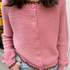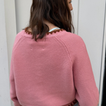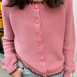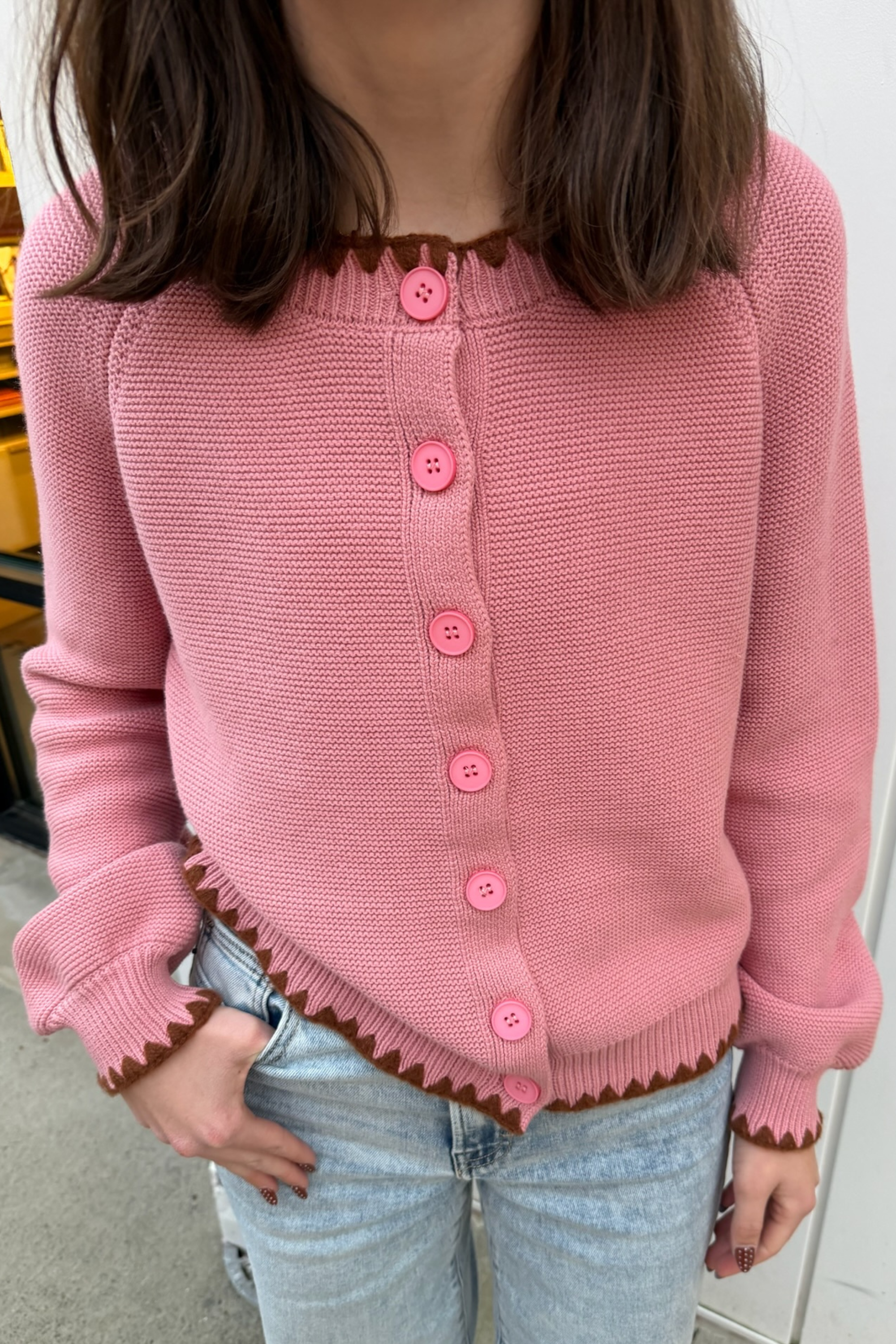 Aliza Contrast Stitch Cardigan - Pink/Brown