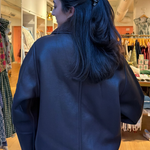This chic black jacket features luxurious sherpa fleece that's as cozy as it is elegant, paired with eye-catching stitch detailing that sets it apart. The relaxed silhouette keeps things comfortable while maintaining that sophisticated edge you're looking for. Dress it up over a little black dress or throw it on with your favorite jeans—this versatile piece is ready for whatever the night brings.