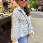 Brighten up cooler days with the Ditsy Floral Quilted Jacket in blue. This lightweight jacket features a charming floral pattern and adds a playful touch to your favorite denim. Cozy yet breathable, it’s perfect for layering without the bulk—so you stay comfortable and stylish wherever you go!