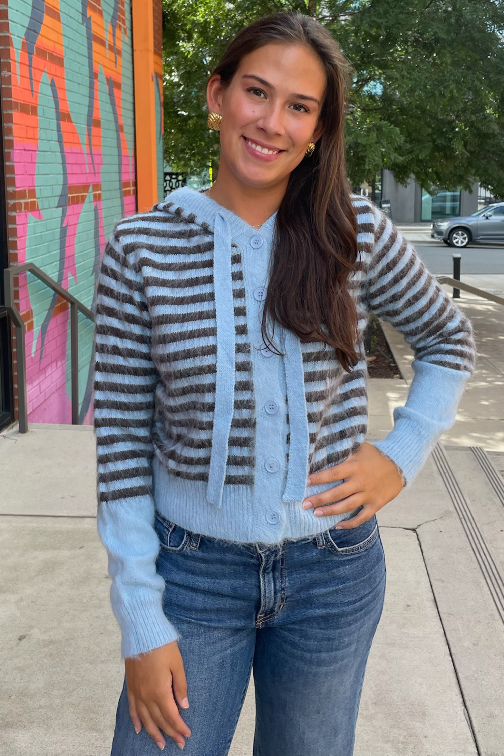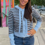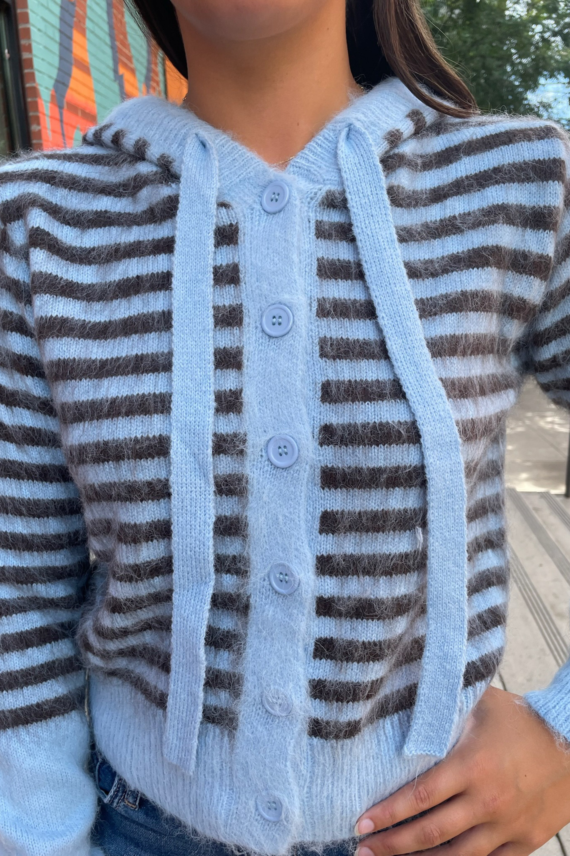 Sasha Stripe Hooded Cardigan - Blue/Brown