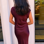 Slip into effortless elegance with the Brit Silky Ruched Maxi Dress in rich wine. This holiday showstopper features luxurious silky fabric with strategic ruching that flatters every curve, creating a stunning silhouette for festive celebrations. The flowing maxi length adds timeless sophistication, while the deep wine hue brings warmth and glamour to any occasion. Perfect for holiday parties, weddings, or special dinners—you'll feel confident and gorgeous from the first moment you put it on.