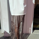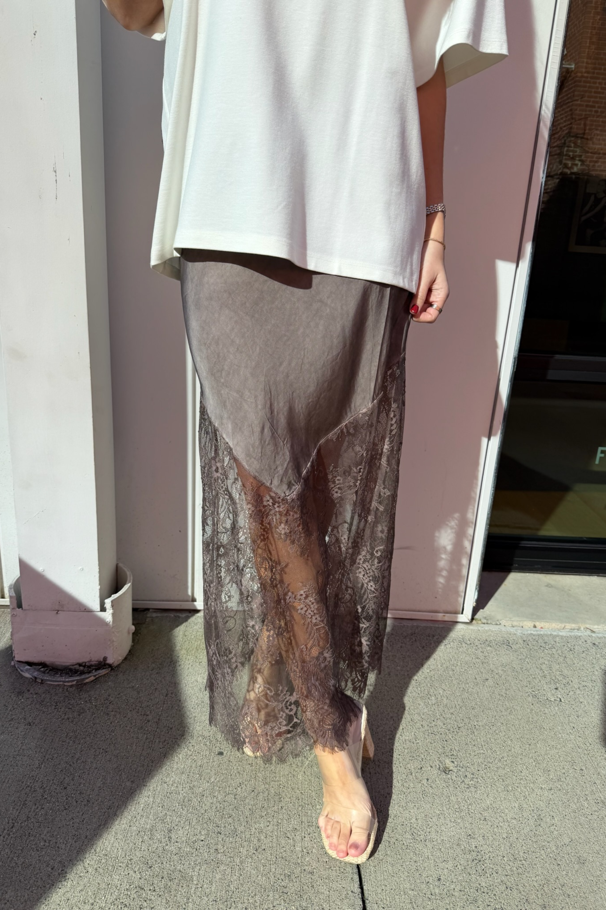 Elevate your everyday style with this gorgeous chocolate skirt featuring delicate lace trim that adds instant sophistication. Slip it on with your favorite tee for an effortlessly chic look that works from day to night. The silky fabric drapes beautifully while the lace detailing brings that perfect touch of elegance. Whether you're dressing it down or up, this versatile piece is about to become your new go-to favorite.