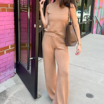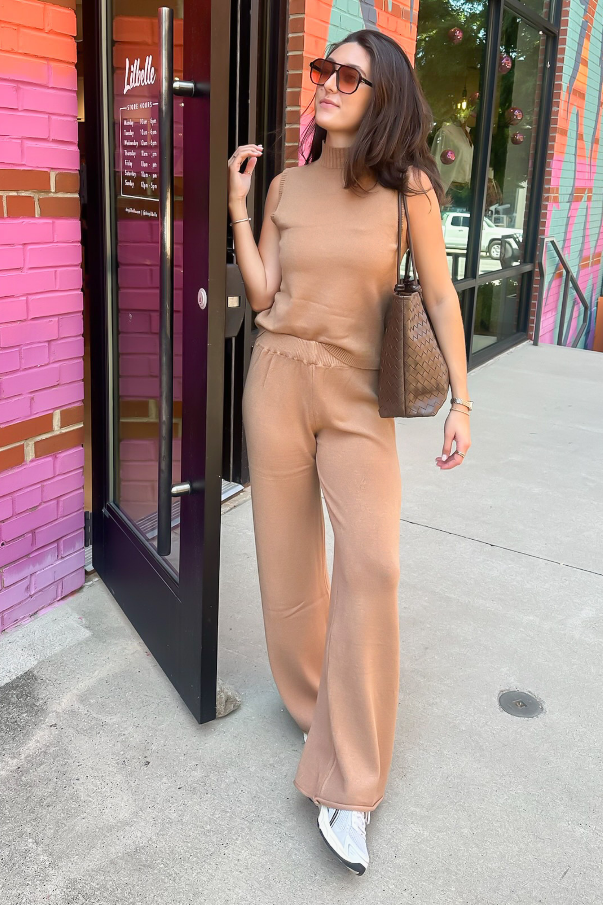 Step into comfort with the Emily Cozy Knit Flare Pant in Camel! Made from breathable viscose knit, these pants move with you thanks to their lightweight fabric and flared silhouette. Perfect for all-day wear, they combine cozy vibes with a stylish flare, making them your new go-to for casual fun and effortless chic. Pair with the Taylor Mockneck Sweater Tank for a full set look.
