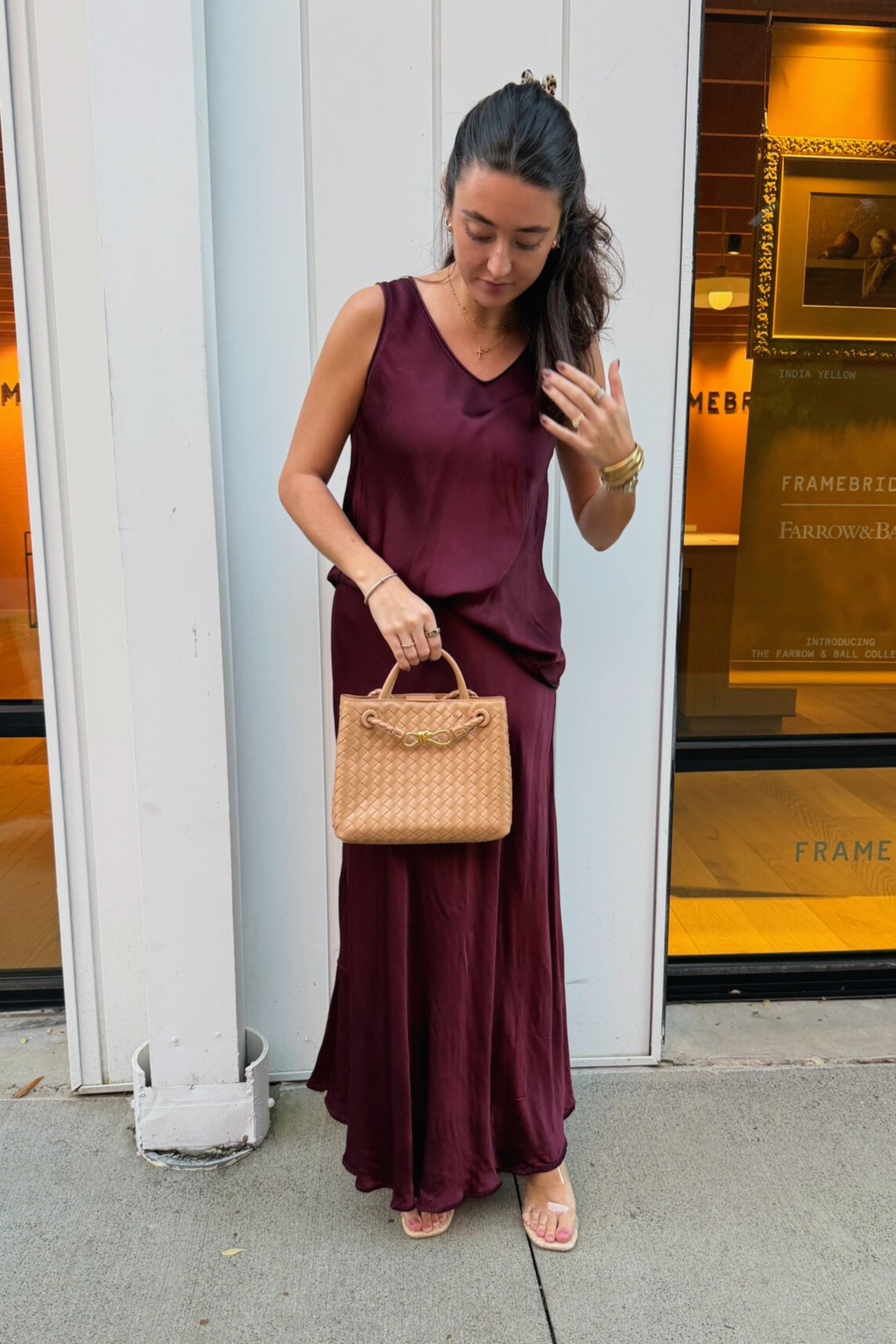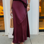 Elevate your holiday wardrobe with the Jennie Viscose Maxi Skirt in rich wine. This luxurious piece drapes beautifully and moves with effortless elegance, making it perfect for festive celebrations and special occasions. The deep wine hue pairs flawlessly with the Bria Skirt for a coordinated look that turns heads. Crafted from sumptuous viscose, it's your go-to for creating memorable holiday moments in style.
