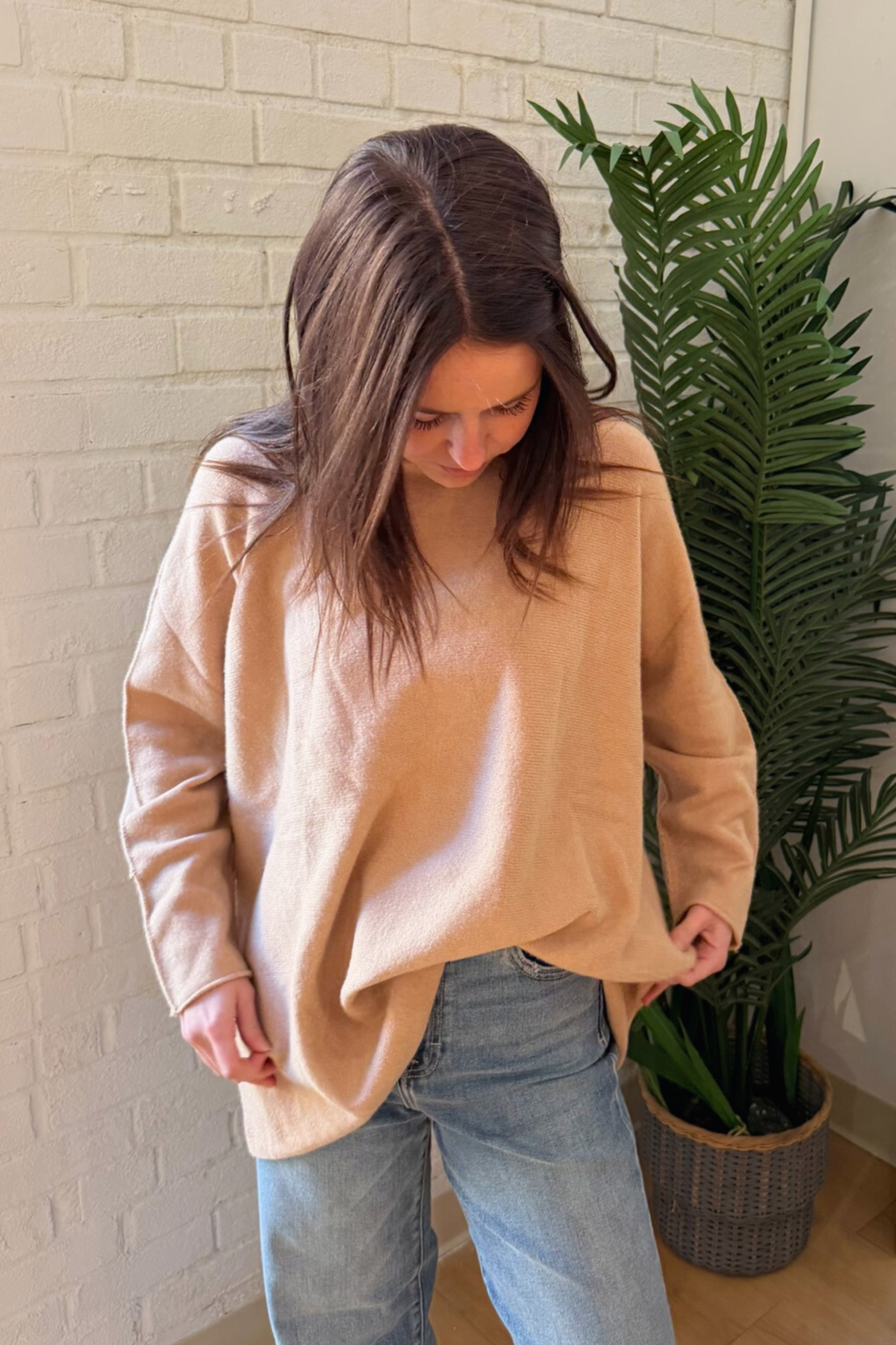 Wrap yourself in cozy comfort with the Katie Oversized Sweater Classic. This soft, relaxed-fit essential features a timeless beige hue that pairs effortlessly with everything in your closet. Perfect for lazy days, coffee runs, or whenever you want to feel like you're hugging a cloud. The oversized silhouette gives you that effortlessly chic vibe while keeping you warm and snug. Your new favorite sweater is here.