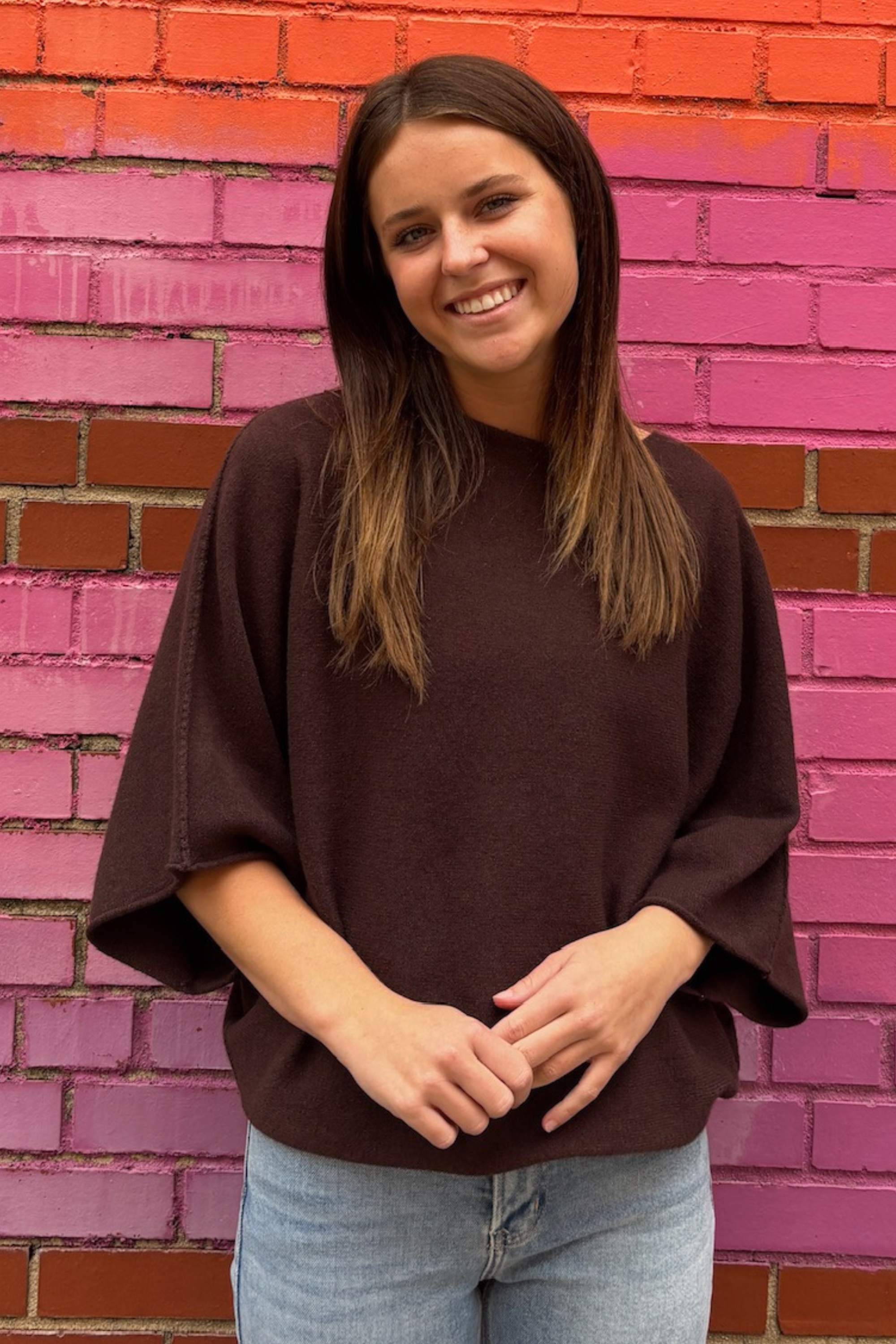 Mia Crewneck Batwing Sweater - Chocolate Brown