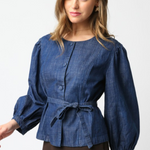 Brielle Denim Button Down Tie Top - Denim
