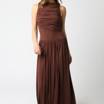 Brinley High Neck Jersey Maxi Dress - Dark Brown