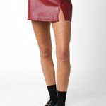 Get ready to cheer in style with the Game Day Skort in Scarlet! This fun mini skirt features a sleek leather look with a playful side slit and built-in shorts for comfort and confidence. Perfect for showing your team spirit while staying active and fashionable all game long.