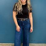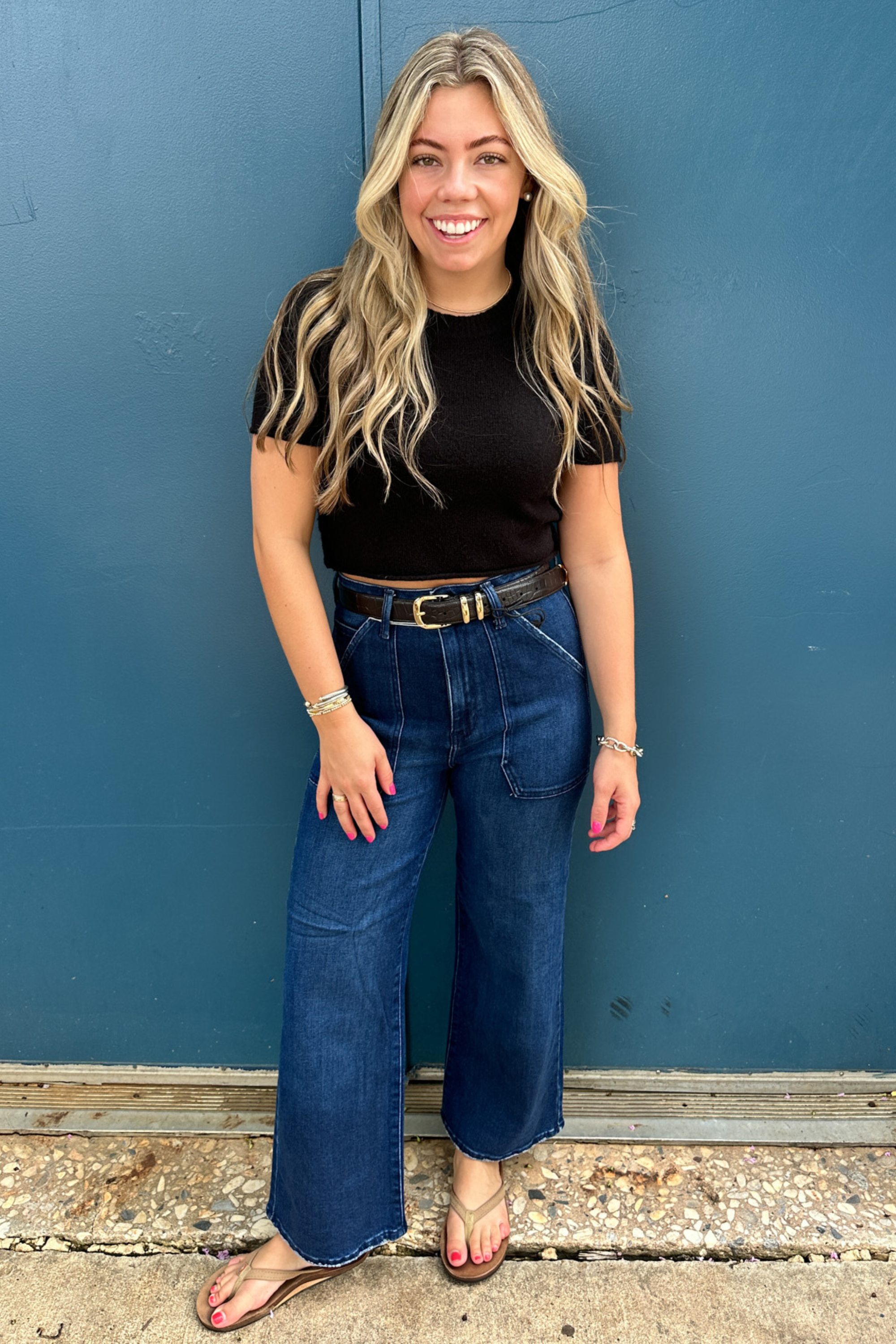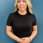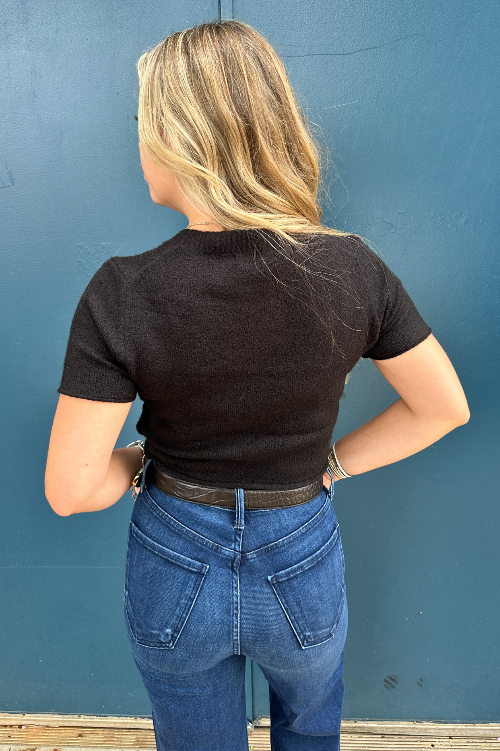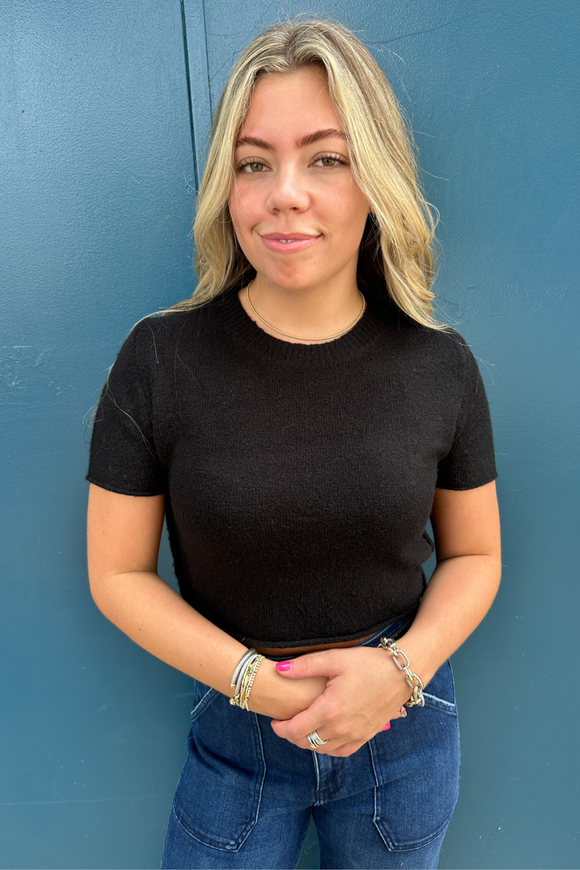 This Sami Crop Short Sleeve Sweater in black is your new go-to for layering this fall. Its perfect crop length pairs effortlessly with denim or skirts, adding a playful touch to any outfit. Cozy yet lightweight, it’s ideal for mixing and matching as the weather cools down.