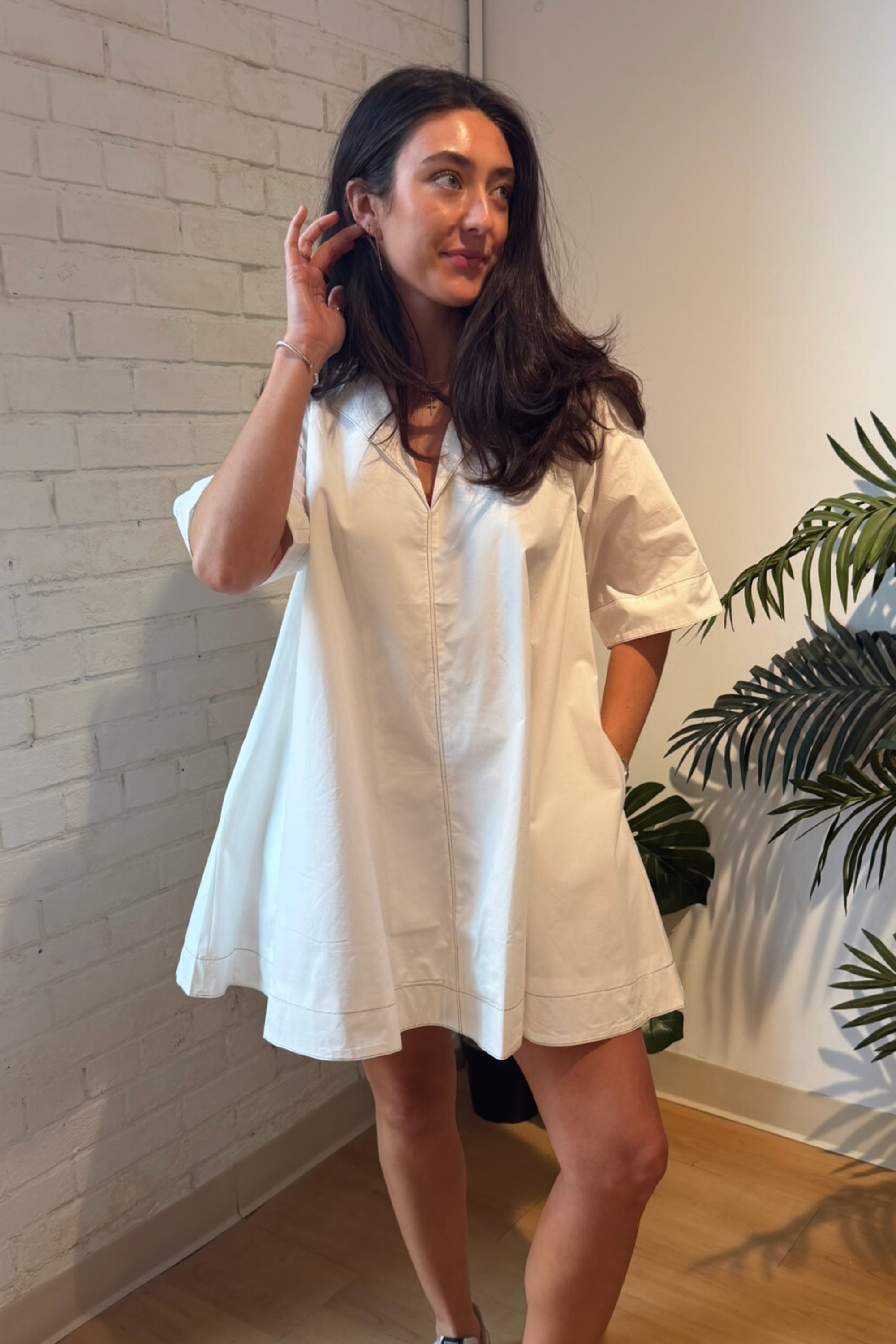 The Vic Mini Dress in Off White is a wardrobe essential that our team absolutely loves. This piece features a flattering oversized fit that skims the body beautifully while keeping things comfortable and effortless. Perfect for dressing up or down, it's the kind of versatile staple you'll reach for again and again. Whether you're heading to brunch, running errands, or looking for an easy weekend look, the Vic delivers style without the fuss.
