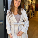 Effortlessly cool and cozy, the Bea Belted Open Cardigan in Oatmeal is your new go-to layering piece. Perfect over your favorite athletic sets for that sporty-chic vibe or paired with a short sleeve tee and jeans for a laid-back weekend look. Its belted design adds shape while keeping you comfortably stylish no matter where your day takes you.