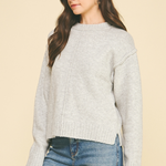 Get cozy in the Anna Raw Edge Crew Sweater in Heather Grey—your new go-to for effortless style. Its soft fabric and relaxed fit make it perfect for layering or wearing solo, while the raw edge detailing adds a playful twist. This versatile sweater pairs easily with anything in your wardrobe, making every outfit a little more fun and comfy.