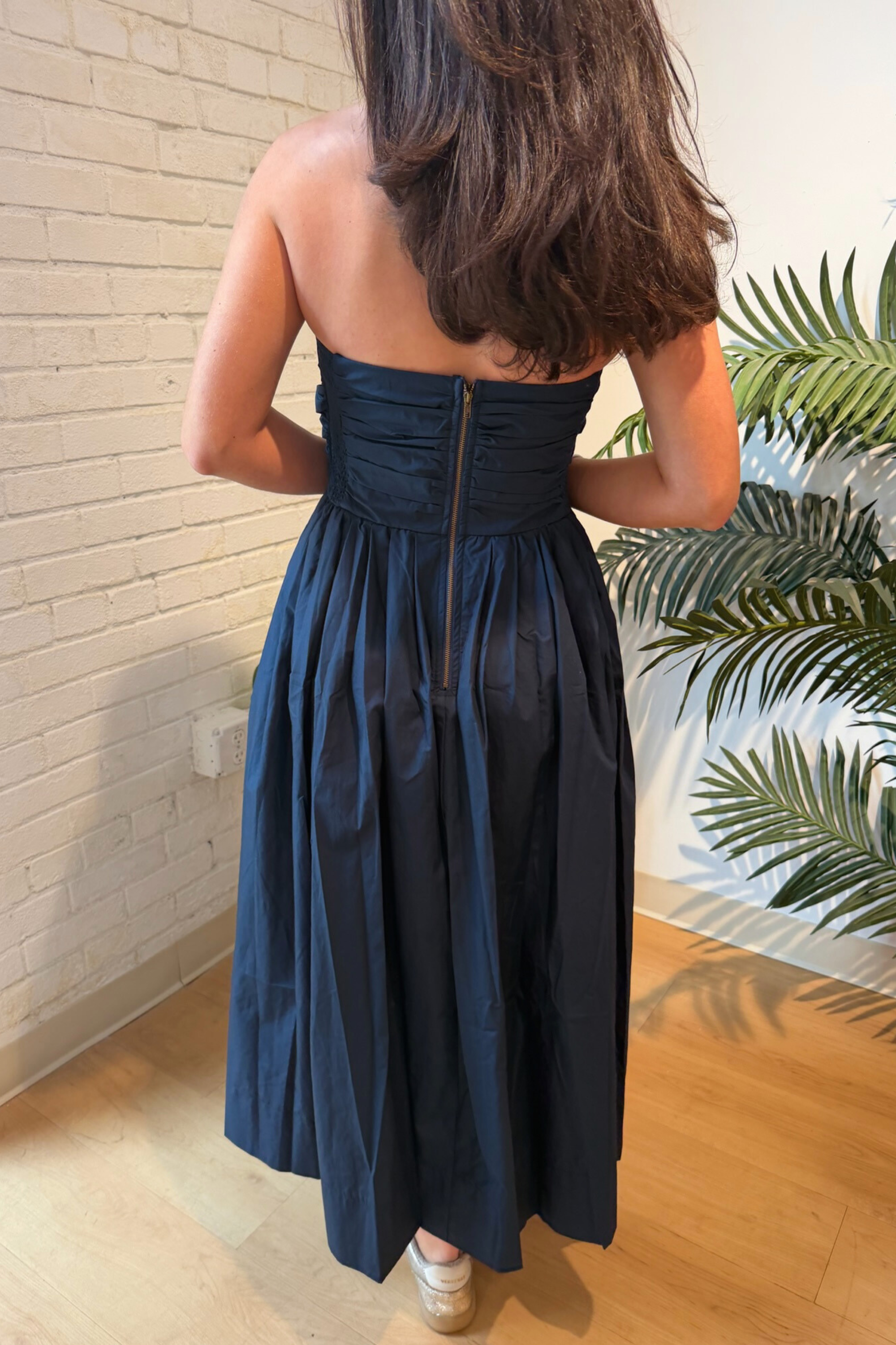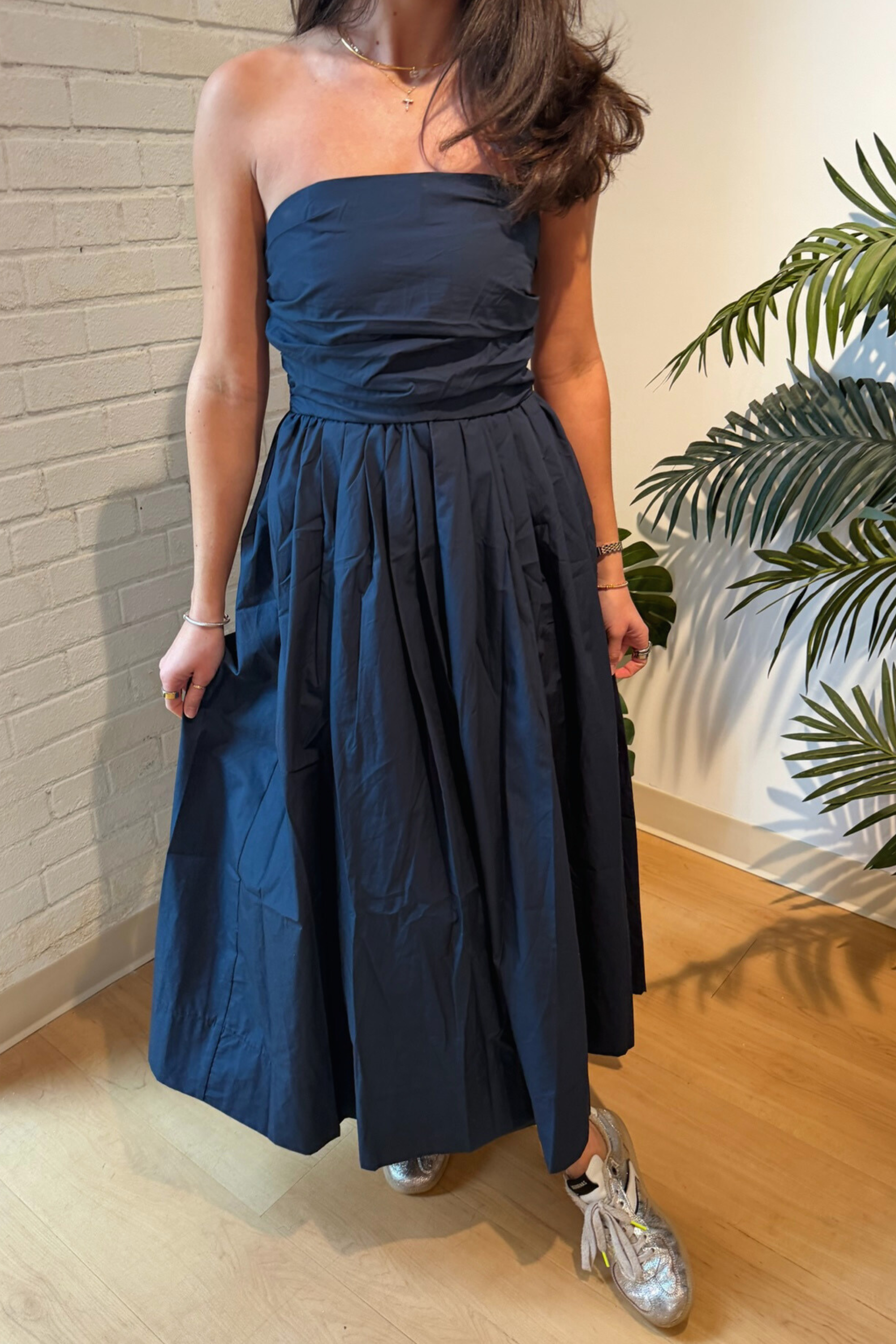 Slip into effortless elegance with the Aria Strapless Midi Dress in a stunning deep navy. This staple piece features a chic strapless neckline and flattering midi length that works for everything from casual outings to special occasions. The rich blue hue is versatile enough to pair with your favorite accessories, making it a go-to dress you'll reach for again and again. Perfect for building a wardrobe that's both timeless and fun.