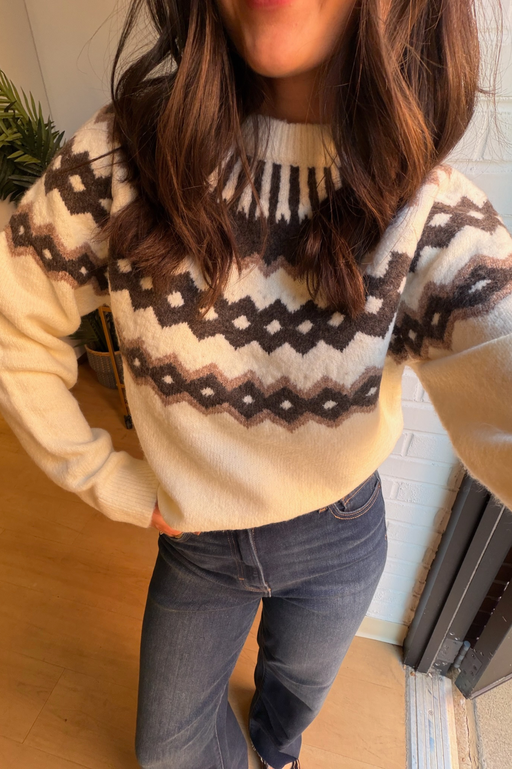Introducing the Breck Fairisle Sweater—your new favorite neutral that refuses to be boring! This cozy knit layers the timeless appeal of a classic cream base with playful fairisle patterning that adds just the right amount of visual interest. Perfect for elevating everyday outfits with understated charm and a hint of personality.