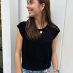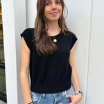 This Carli Cap Sleeve Knit Top is a great short sleeve sweater that’s ideal for layering or wearing on warmer fall days. Its soft knit and playful style make it a cozy, easy choice to brighten up your seasonal outfits.