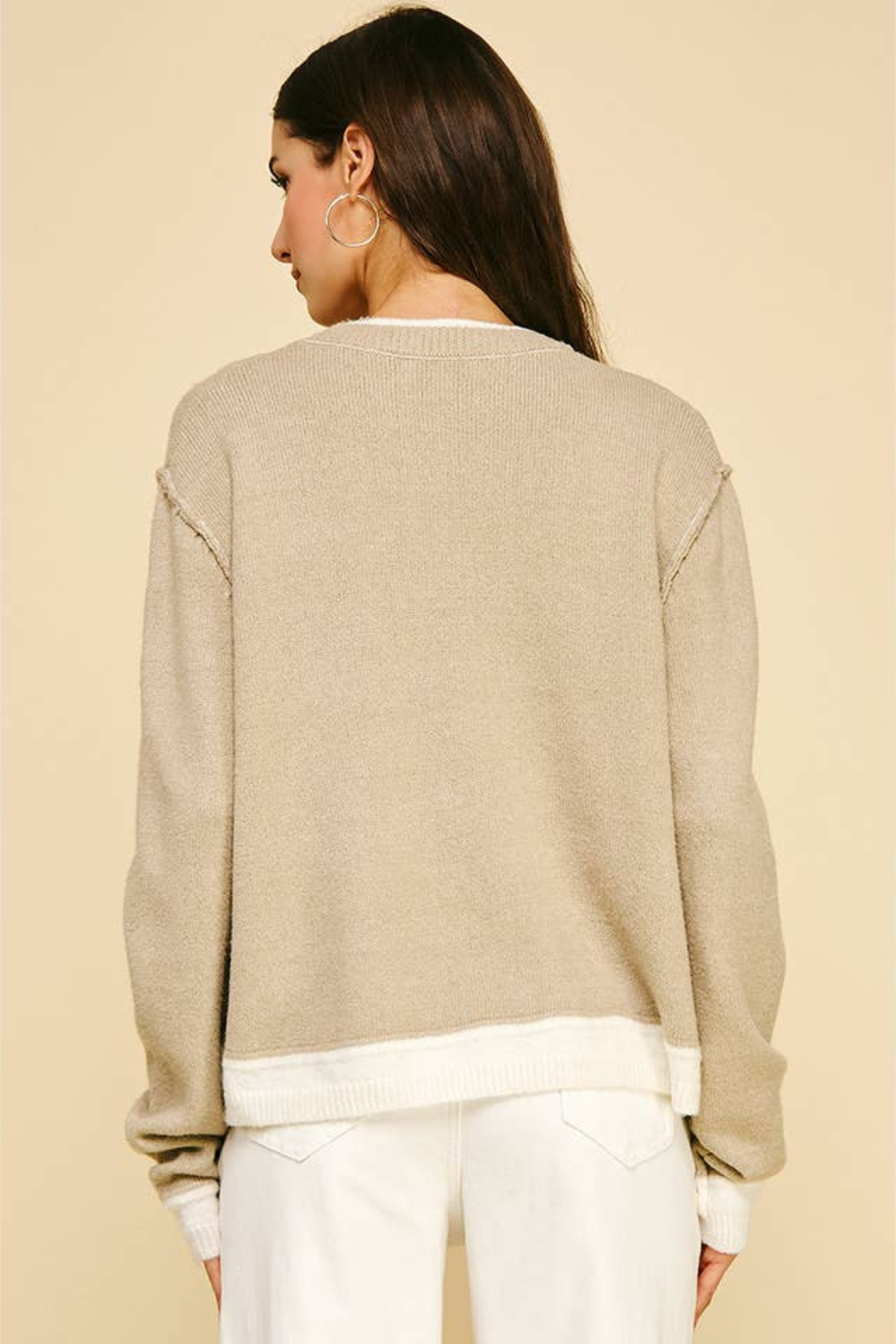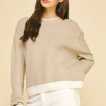 Cloe Contrast Hem Sweater - Taupe