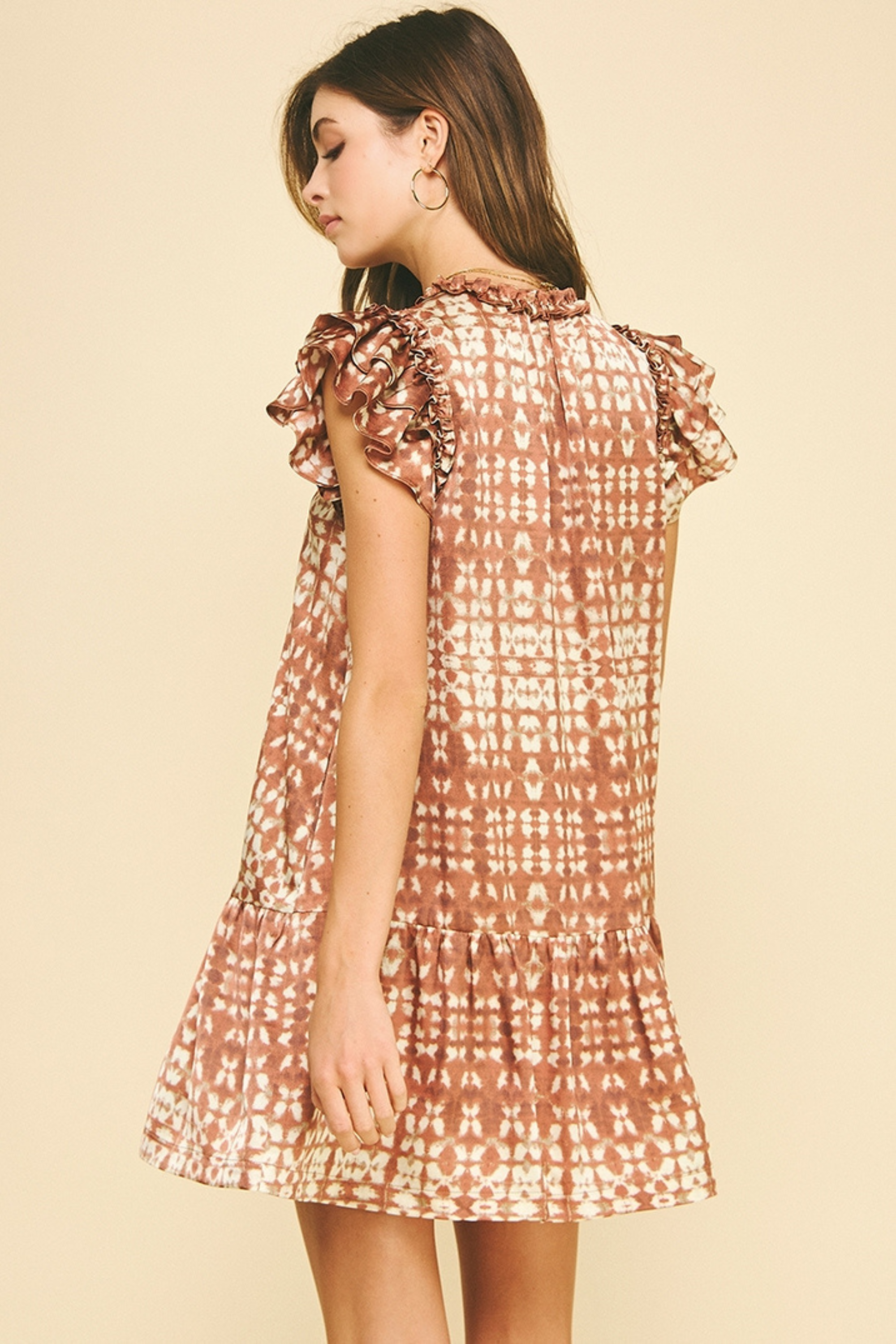 Dawson Printed Mini Dress - Red Brown