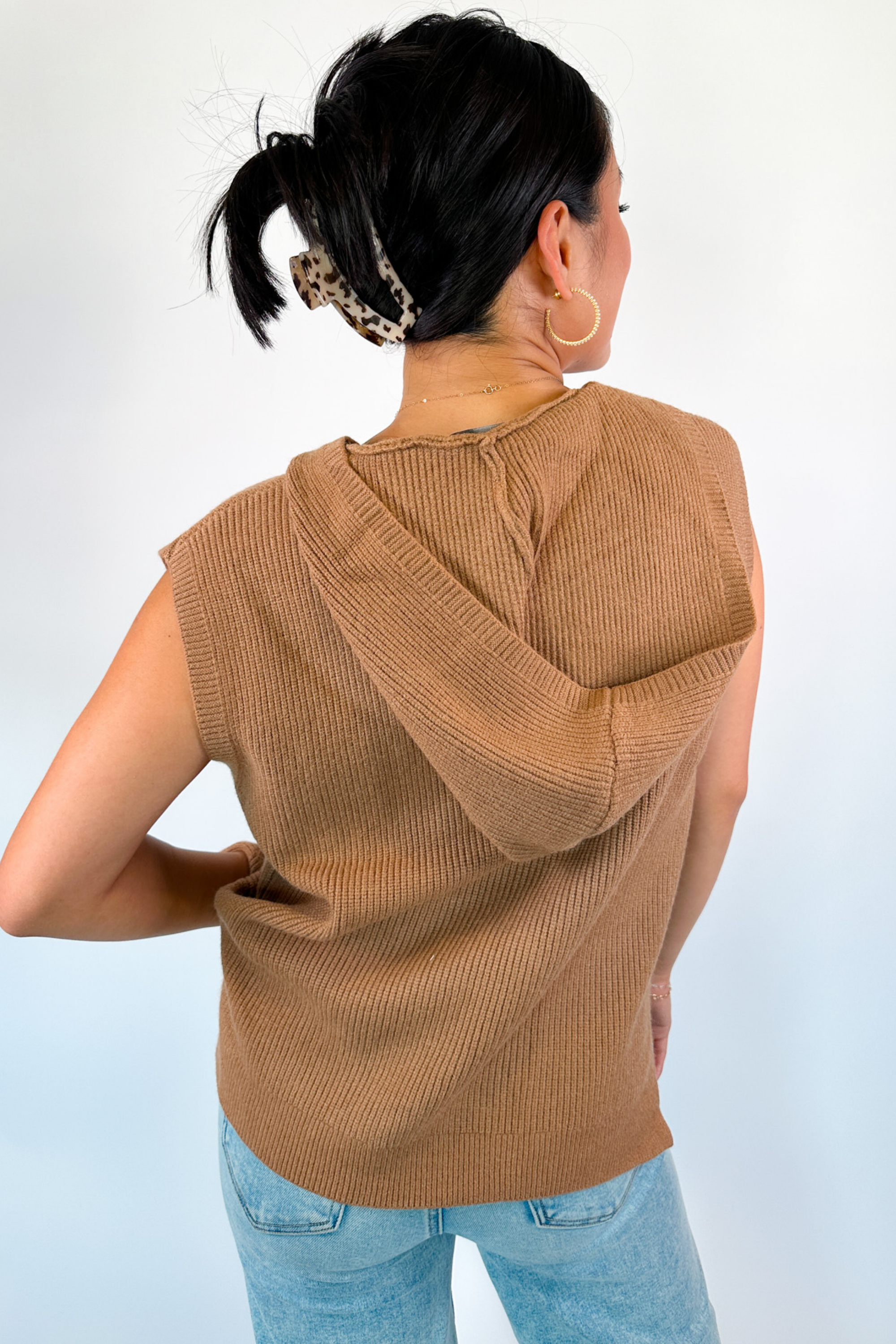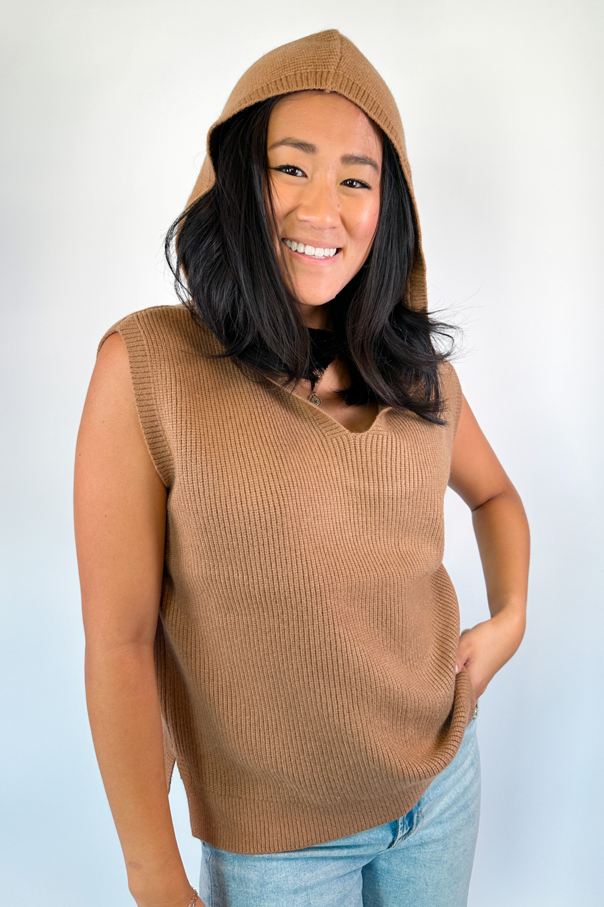 Janie Hooded Sweater Vest - Brown