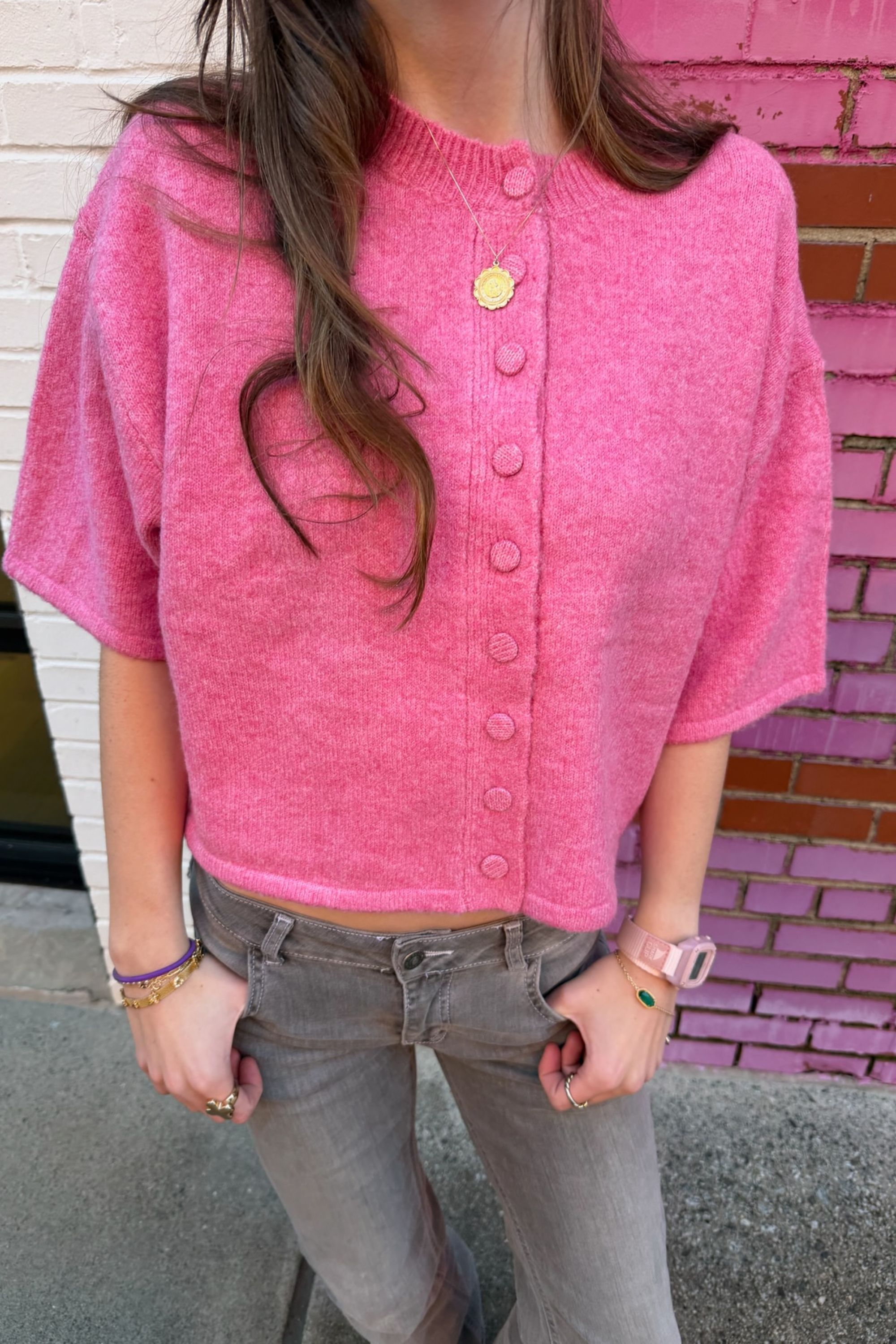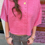 Meet your new spring essential! This adorable short sleeve sweater features charming button details that add instant personality to any outfit. The perfect weight for layering as temperatures warm up, it's ideal for those in-between seasons when you want cozy without the bulk. Soft, stylish, and oh-so-cute—your wardrobe just got a whole lot sweeter!