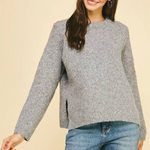 Cozy up this fall with the Kiki Crew Side Slit Sweater in Charcoal! Featuring a relaxed drop shoulder, comfy round neck, and long sleeves, it’s perfect for layering. The playful side slit adds a fun twist to your everyday look, making fall fashion effortless and stylish.