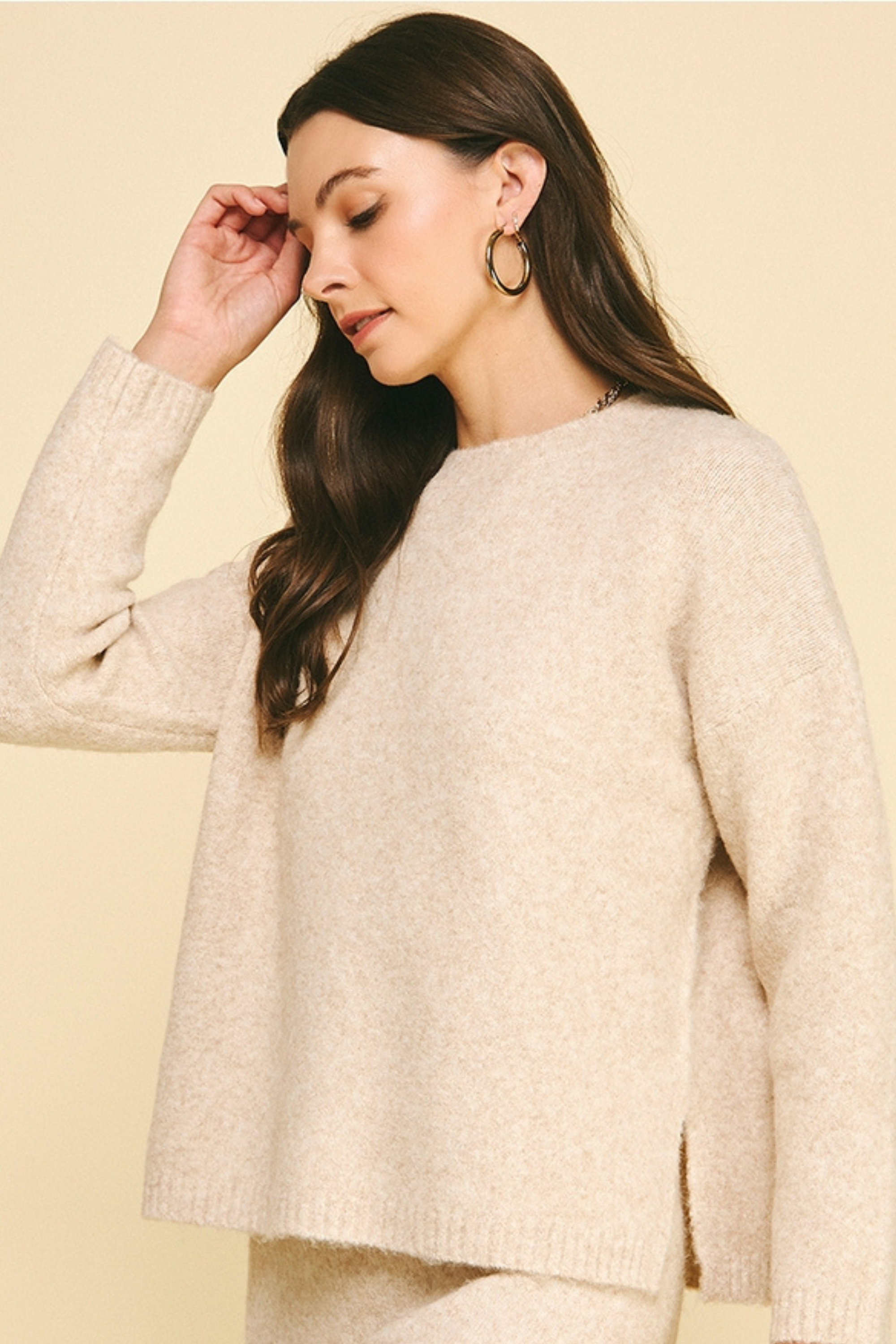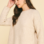 Cozy up this fall with the Kiki Crew Side Slit Sweater in Oatmeal! Featuring a relaxed drop shoulder, comfy round neck, and long sleeves, it’s perfect for layering. The playful side slit adds a fun twist to your everyday look, making fall fashion effortless and stylish.