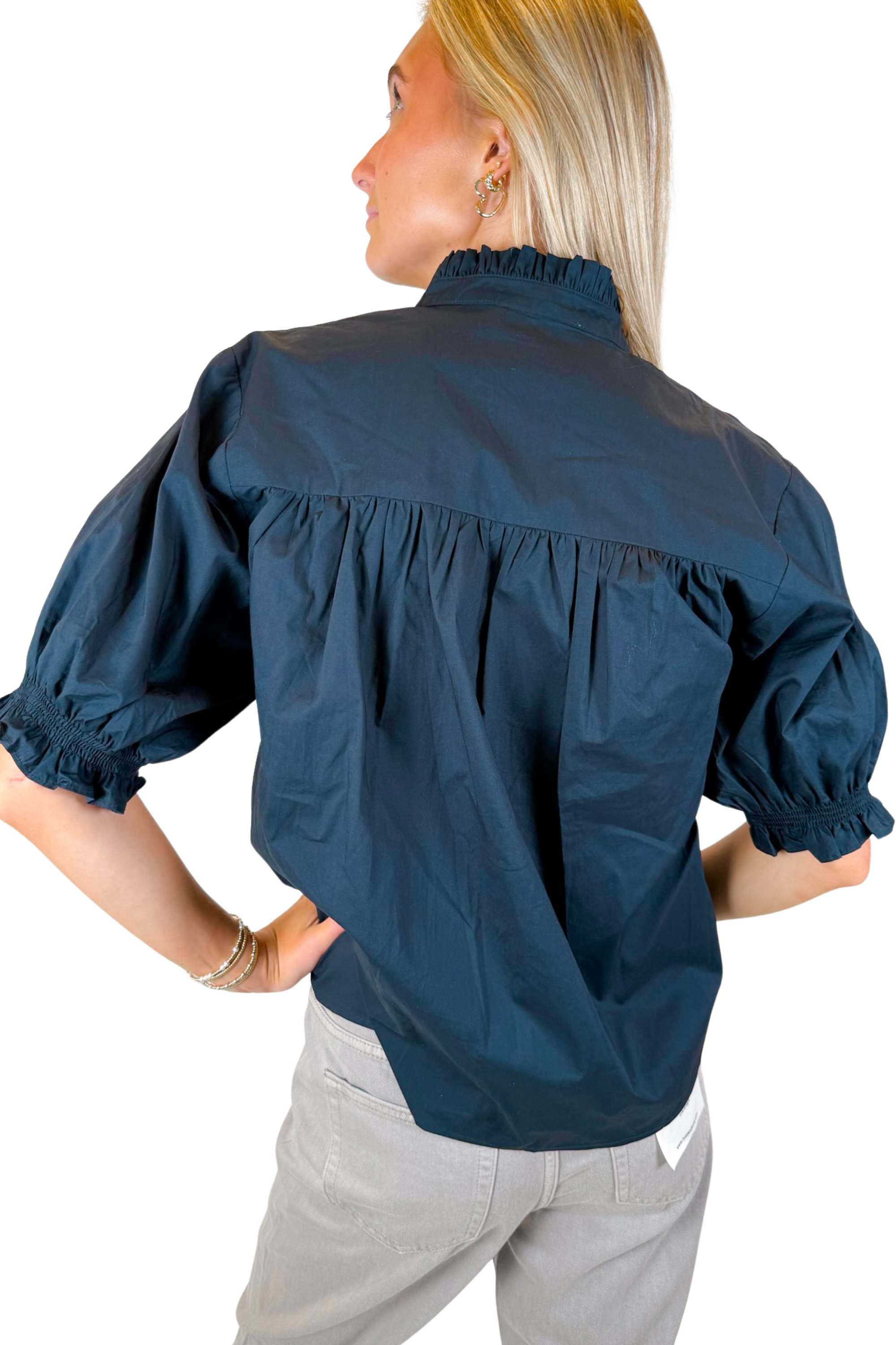 Nancy Vneck Puff Sleeve Top - Denim Black
