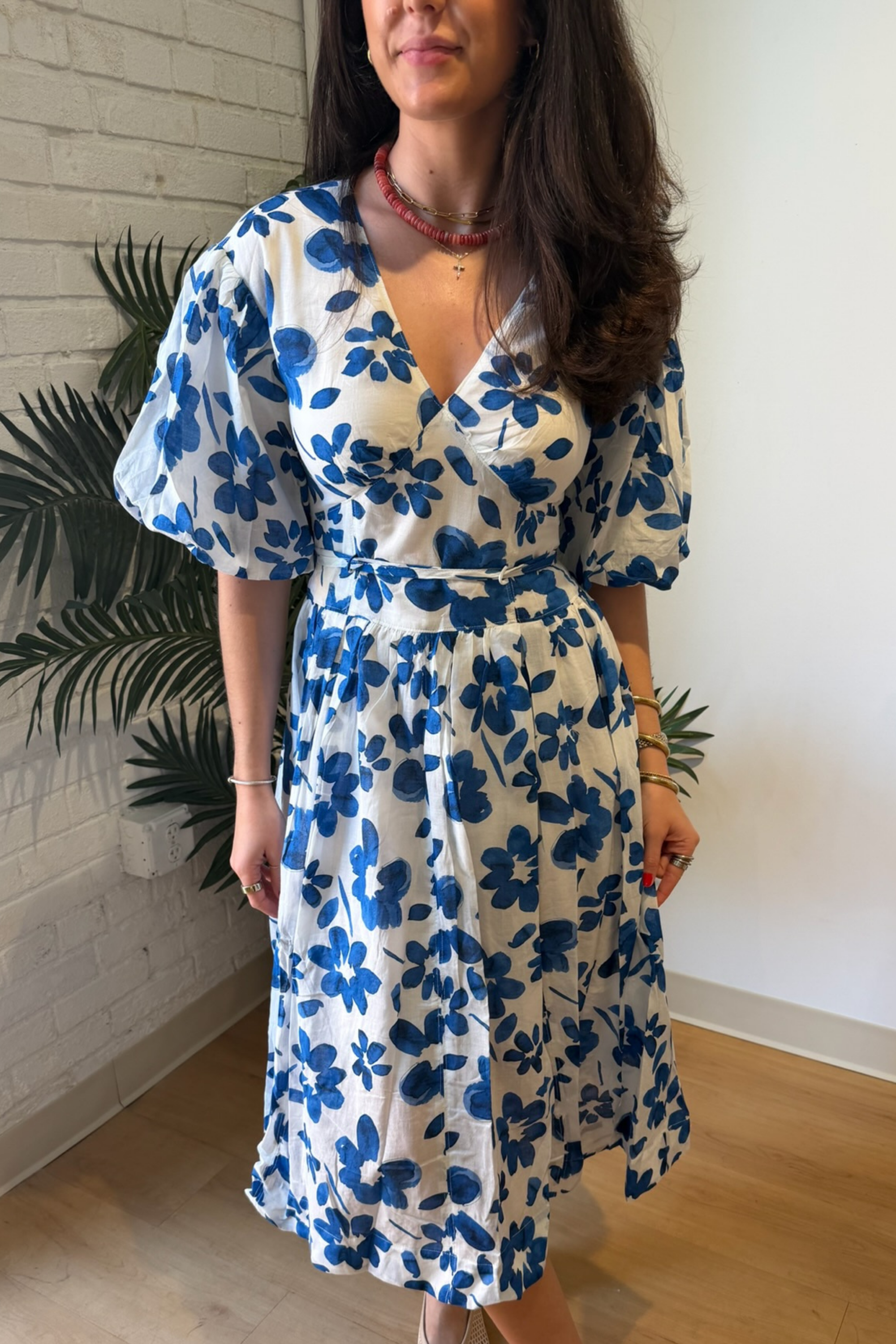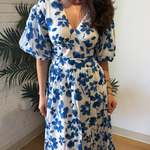 Raina Floral Midi Dress - White/Blue