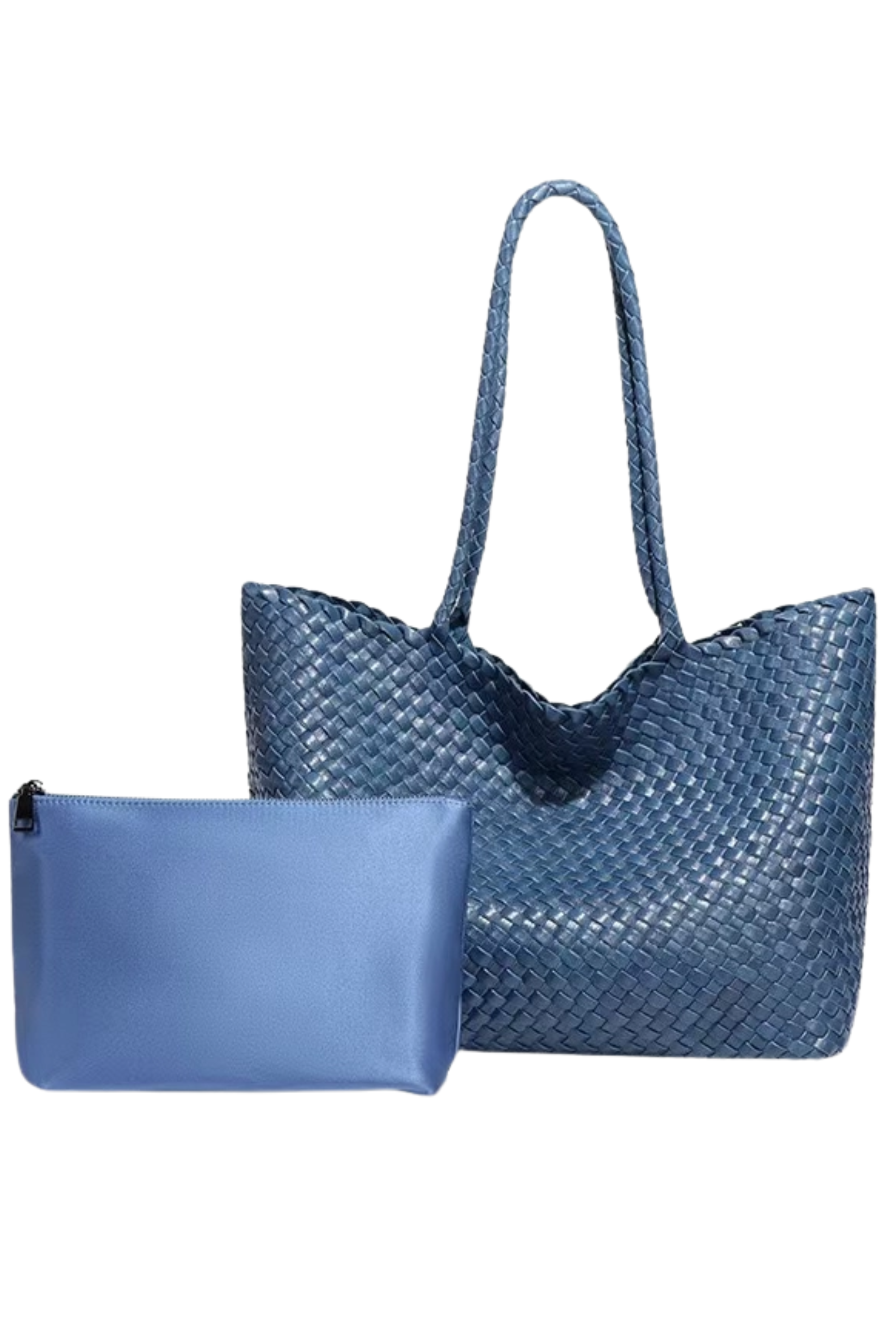 Chic and practical, this woven microfiber leather tote offers a spacious interior for all your essentials and comes with a color matching cosmetic pouch for organized convenience. Its textured design adds a stylish, modern touch to everyday carry.