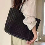 Wendy Woven Tote Bag with Pouch - Black