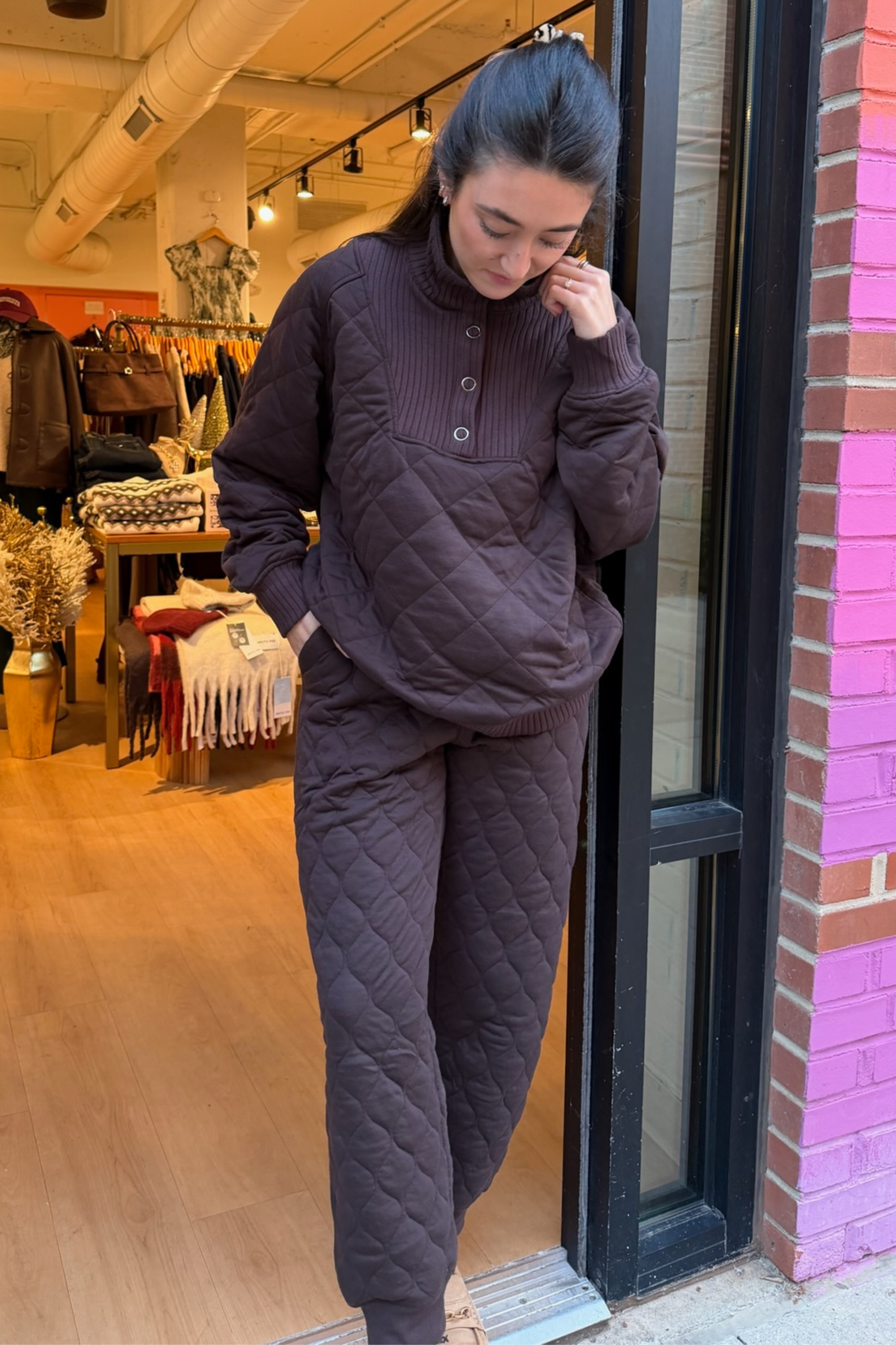 Designed for those days when you want serious coziness without sacrificing style, these joggers feature plush quilted fabric that keeps you warm and snug. Throw them on with your favorite tee for effortless lounging, or pair with our matching pullover to create the ultimate comfort outfit. Perfect for chilly weather and all-day relaxation.