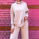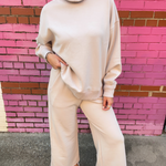Wrap yourself in warmth and style with the Lindi Rib Mockneck Pullover in Mocha Cream. Its cozy ribbed texture makes it the perfect chill-day companion. Pair it with the matching Carrie wide leg crop pant to create an effortlessly cool, comfy look that’s ready for anything—whether you’re lounging at home or out on an adventure.