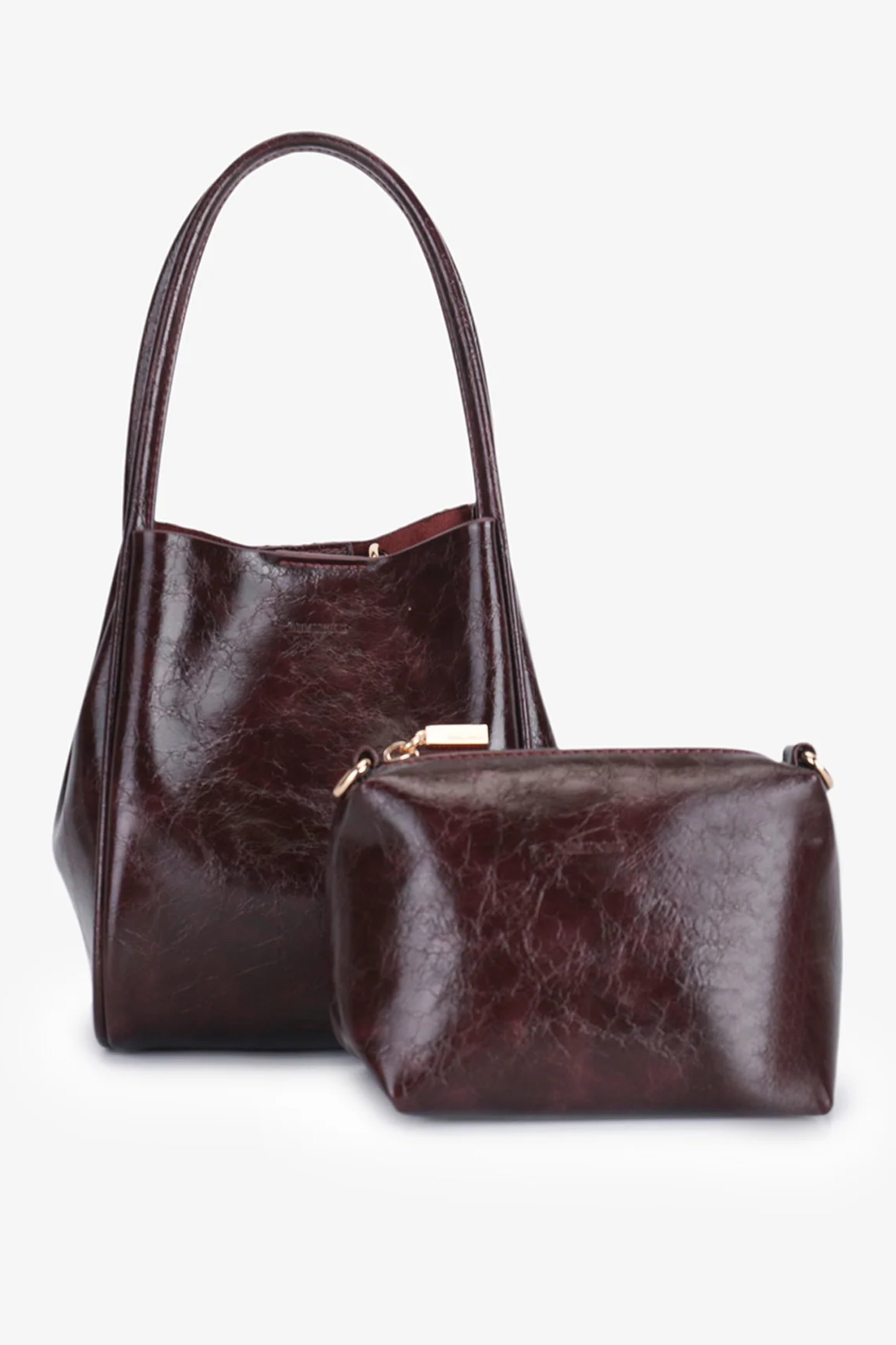This mini tote offers convenience, versatility, and a touch of sophistication. Two magnetic snap closures provides a secure and easy way to access your belongings while keeping them safe. Includes an adjustable crossbody strap and a wide crossbody strap, allowing you to customize how you wear the tote.