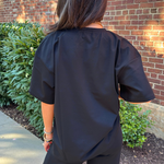 Bold proportion, effortless structure. Our short-sleeve shirt is reimagined in an oversized silhouette with sculptural lines and a relaxed fit. Designed to pair with our iconic wide-leg pants, it delivers quiet drama with modern minimalism.