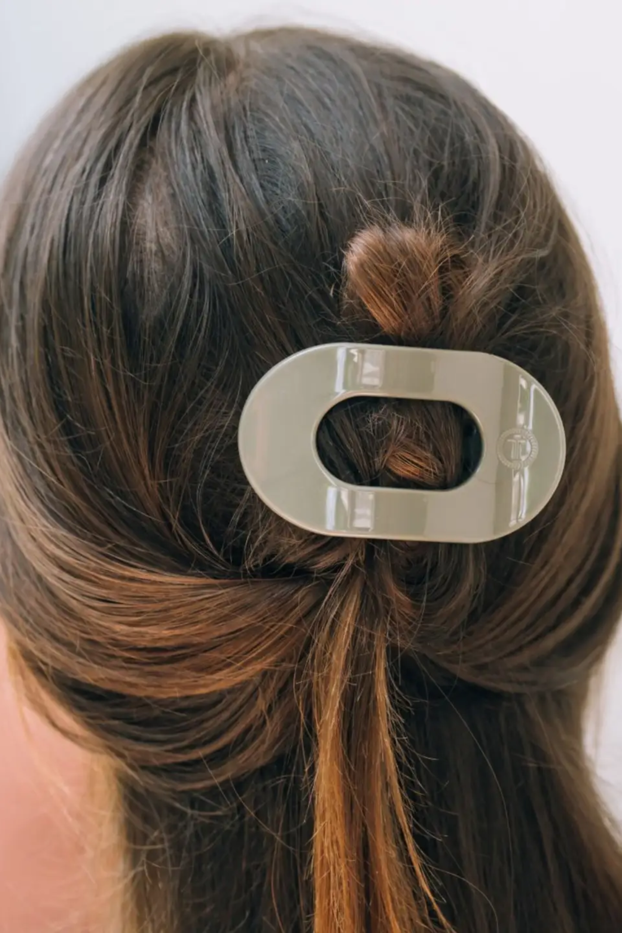 Lay flat and relax with the new TELETIES Small Flat Round Hair Clip in Sage Green. This hair clip is designed to allow you to lay back flat, do yoga, or sit comfortably in a seat with a headrest, and it is made with the same material that is nearly unbreakable.