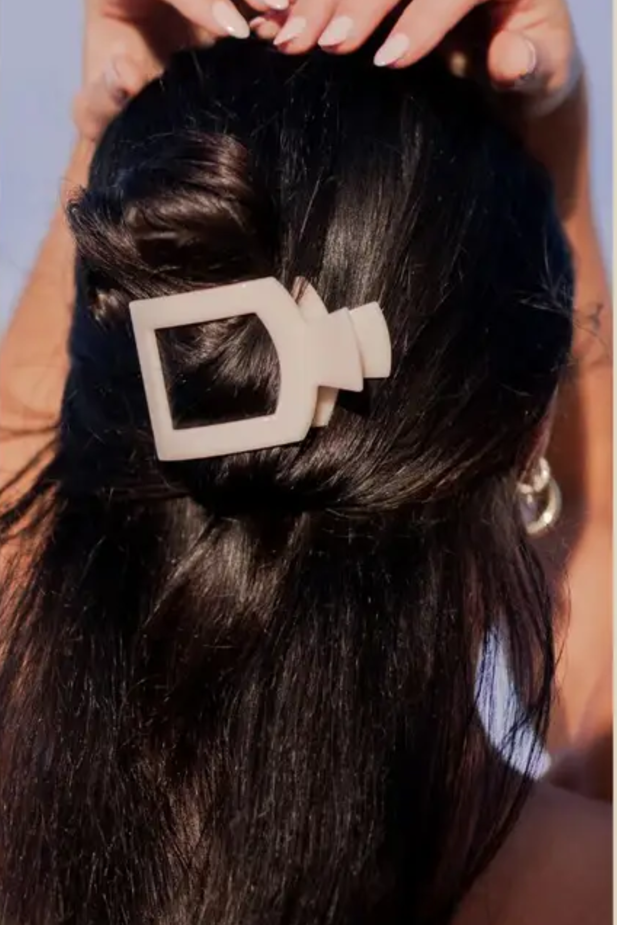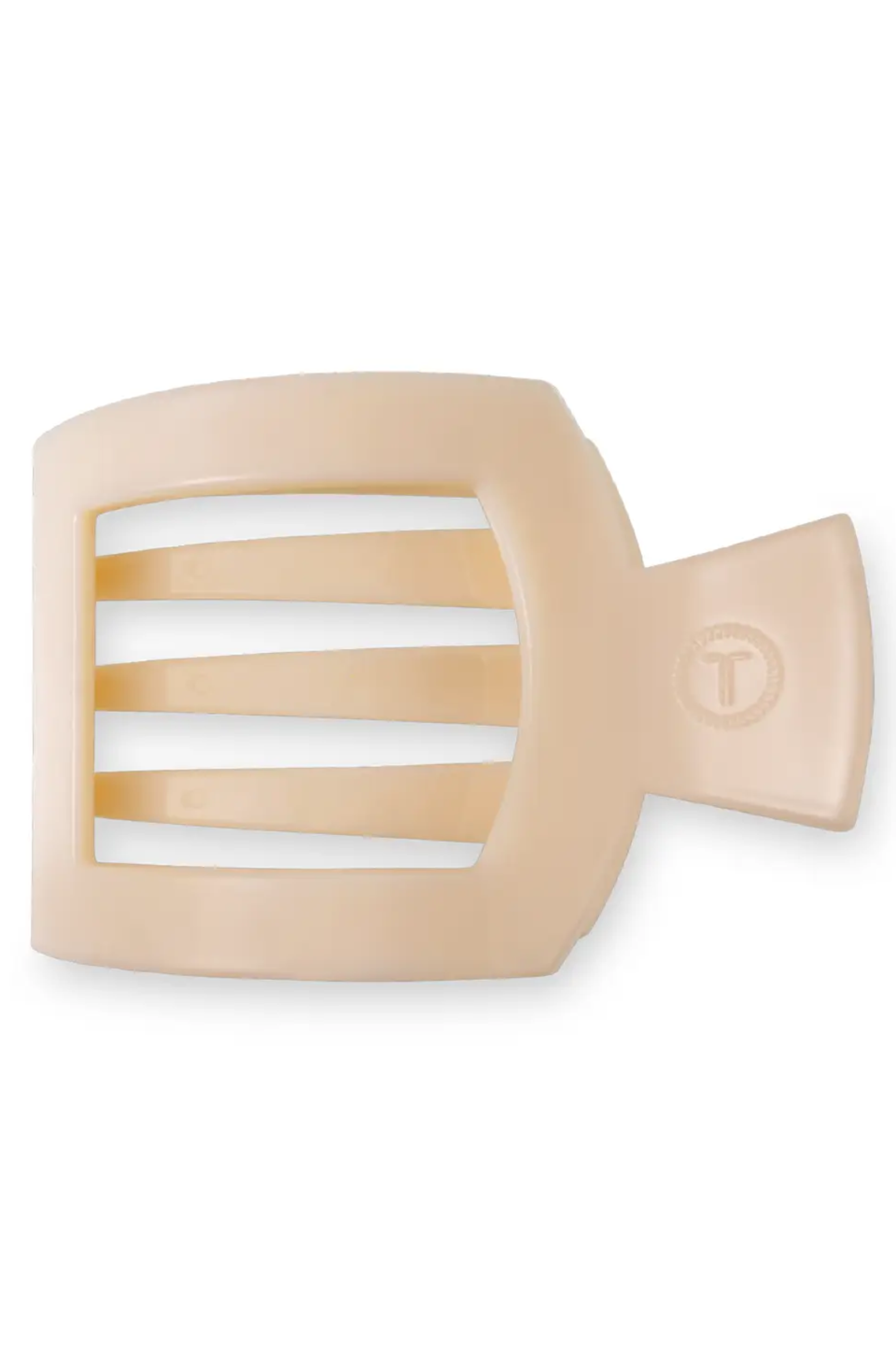Lay flat and relax with the new TELETIES Almond Beige Small Flat Square Hair Clip in Beige. This hair clip is designed to allow you to lay back flat, do yoga, or sit comfortably in a seat with a headrest, and it is made with the same material that is nearly unbreakable. Lay down flat with comfort Bendable teeth for a secure yet gentle hold Lightweight, durable, and hair-friendly Perfect for all-day wear—from sunup to sundown.