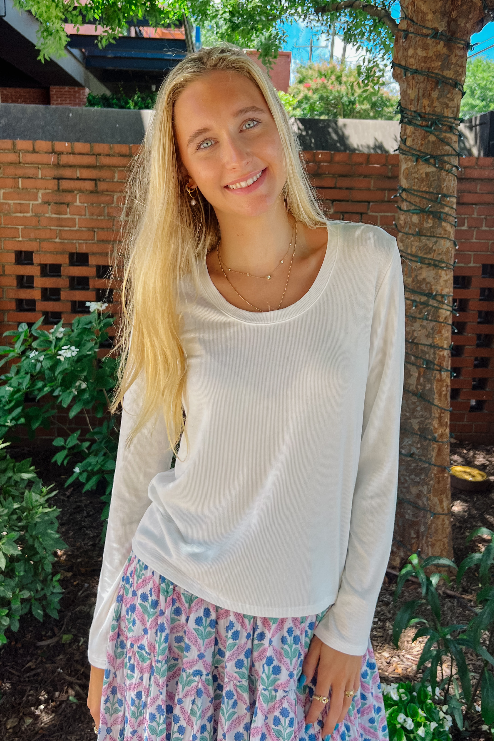 Stay cozy and stylish in the Lauren Long Sleeve Tee. This soft, ribbed, lightweight shirt offers all-day comfort with a playful vibe. Perfect for layering or wearing solo, it’s your go-to for effortless cool on any casual day.