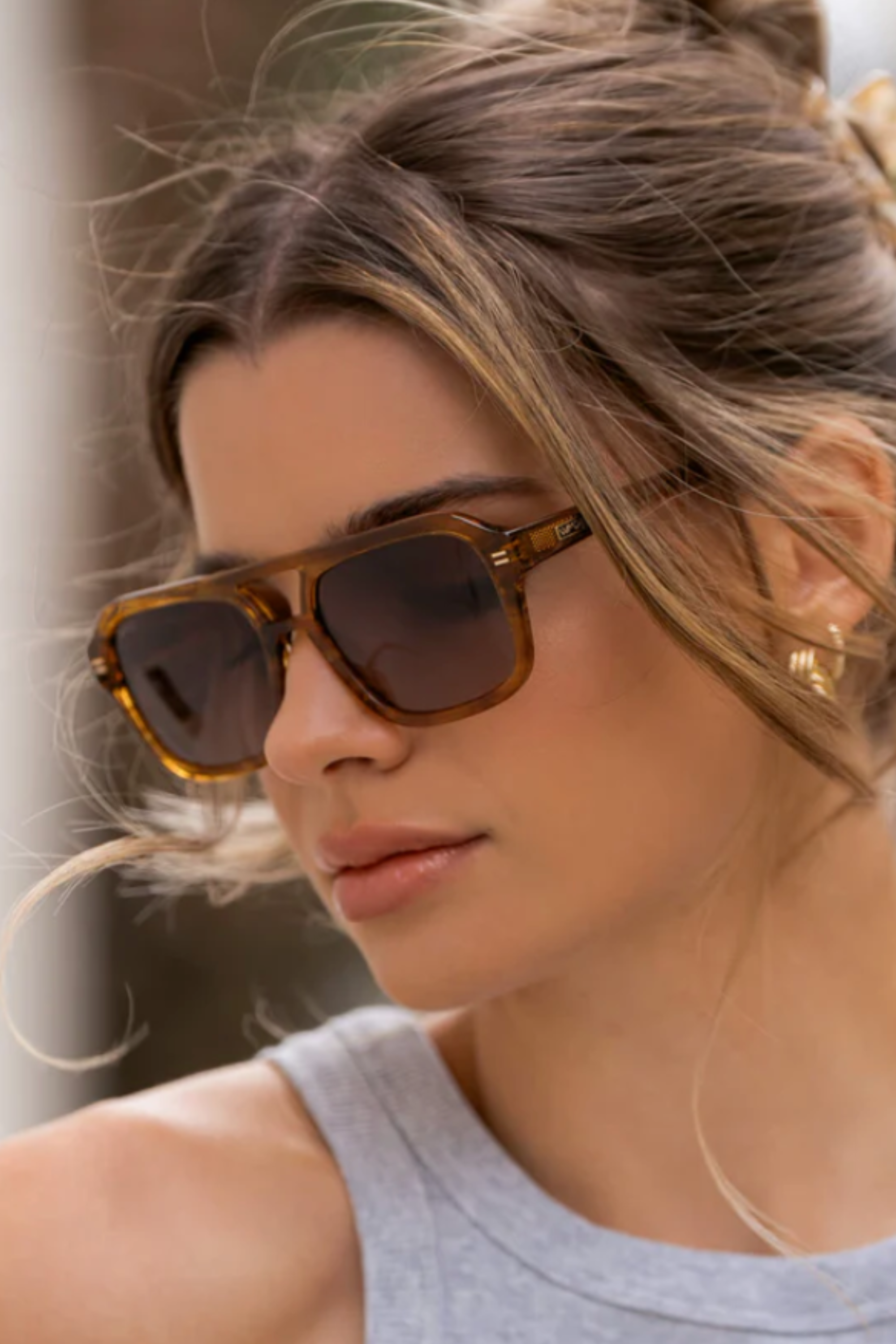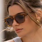 Sydney’s bold square shape, oversized design, and standout double bar deliver retro aviator vibes, while the chunky acetate frame and gold accents give a sense of understated luxury.